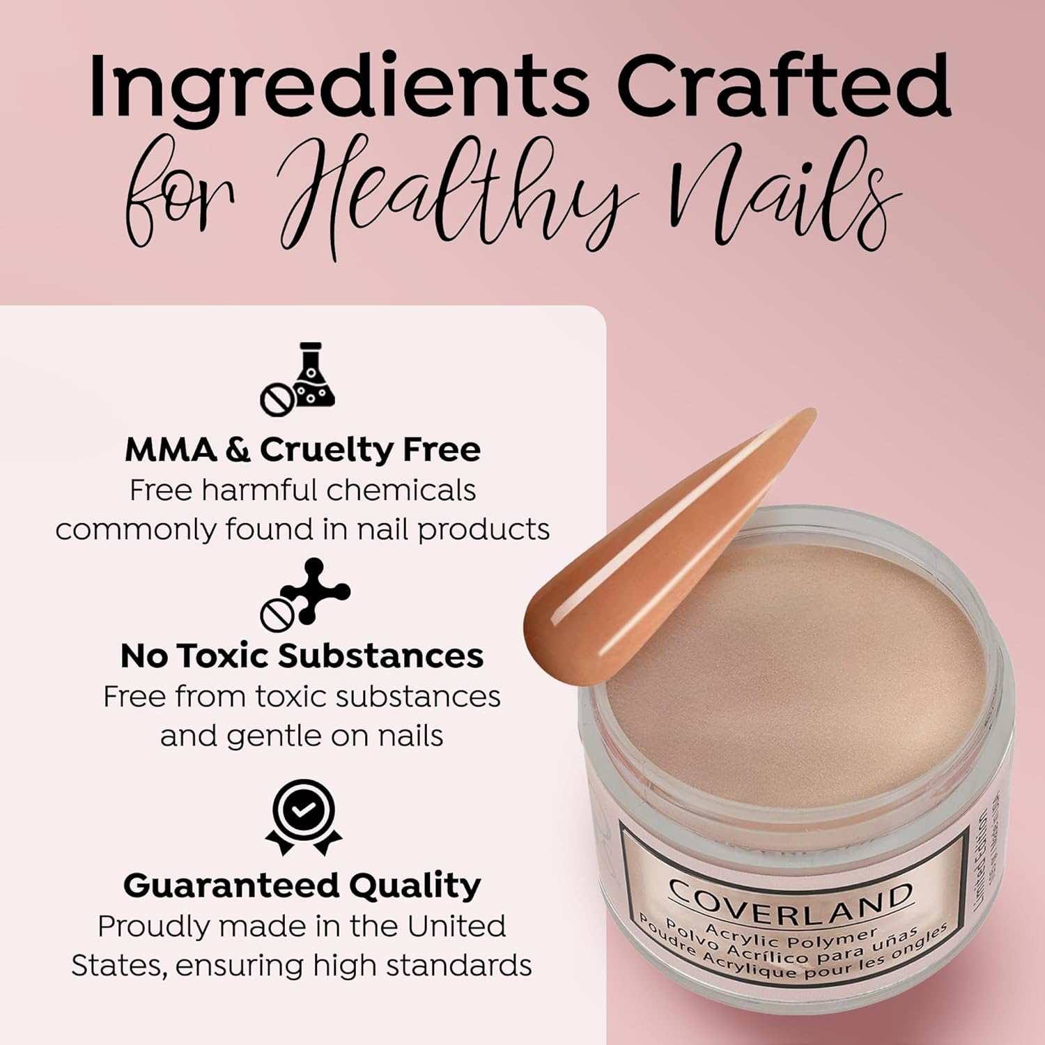 - āļøšššš šššššššš ššššš: The flexibility and adhesion properties of Coverland colored acrylic nail powder make it easy to shape nails with precision, and offers nice control for professionals who prefer to work with a polymerization rate of moderate to fast.