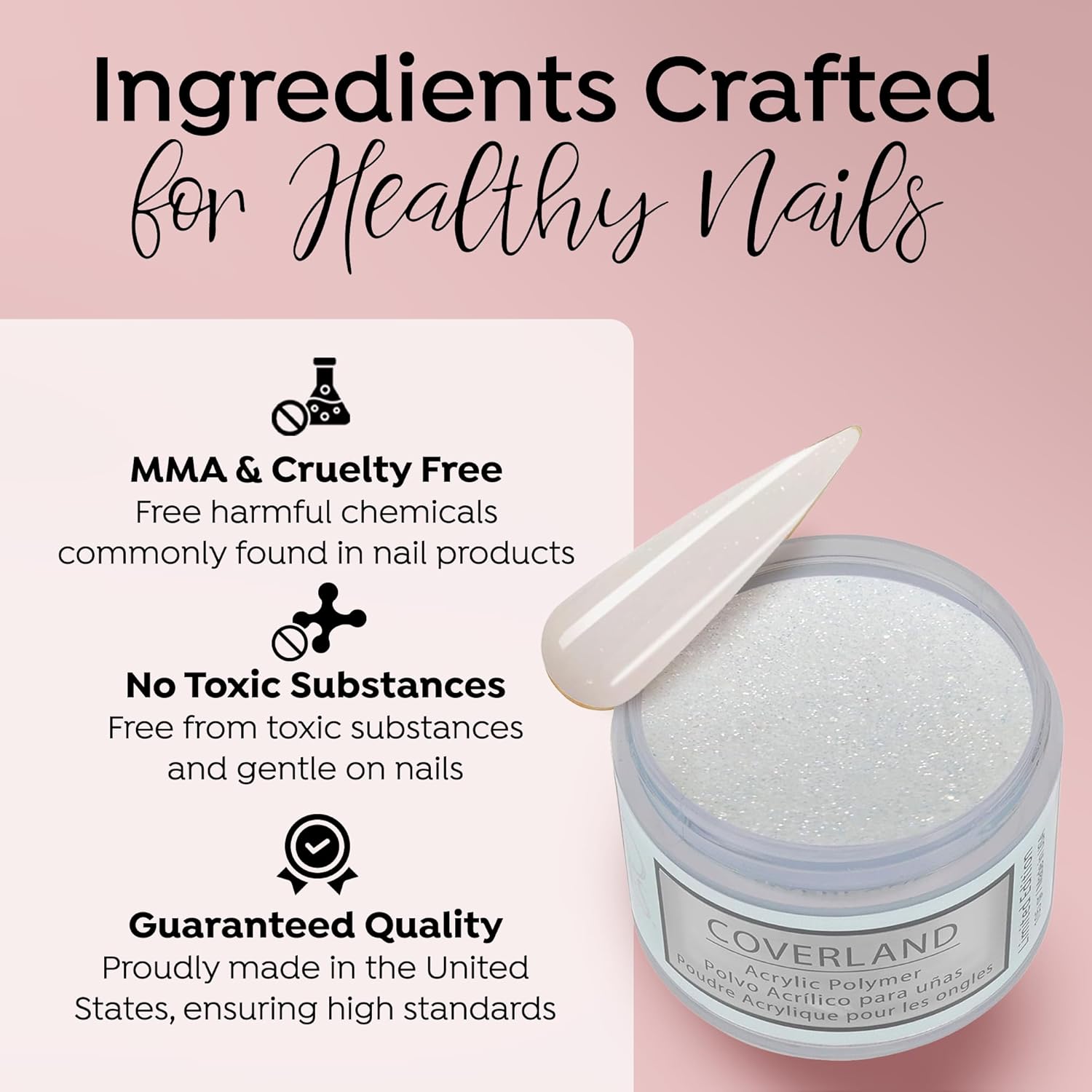 - āļøšššš šššššššš ššššš: The flexibility and adhesion properties of Coverland colored acrylic nail powder make it easy to shape nails with precision, and offers nice control for professionals who prefer to work with a polymerization rate of moderate to fast.