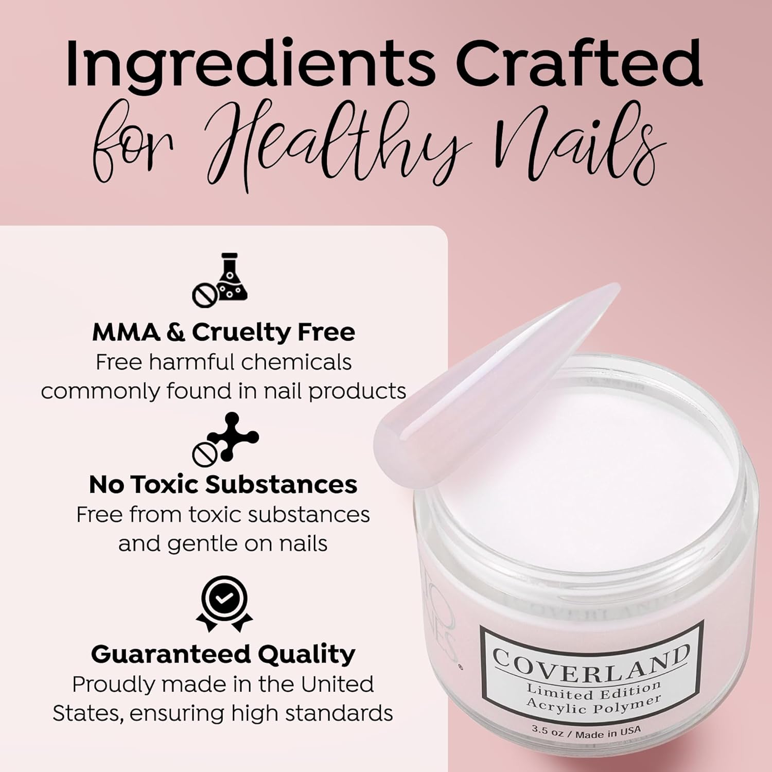- āļøšššš šššššššš ššššš: The flexibility and adhesion properties of Coverland colored acrylic nail powder make it easy to shape nails with precision, and offers nice control for professionals who prefer to work with a polymerization rate of moderate to fast.