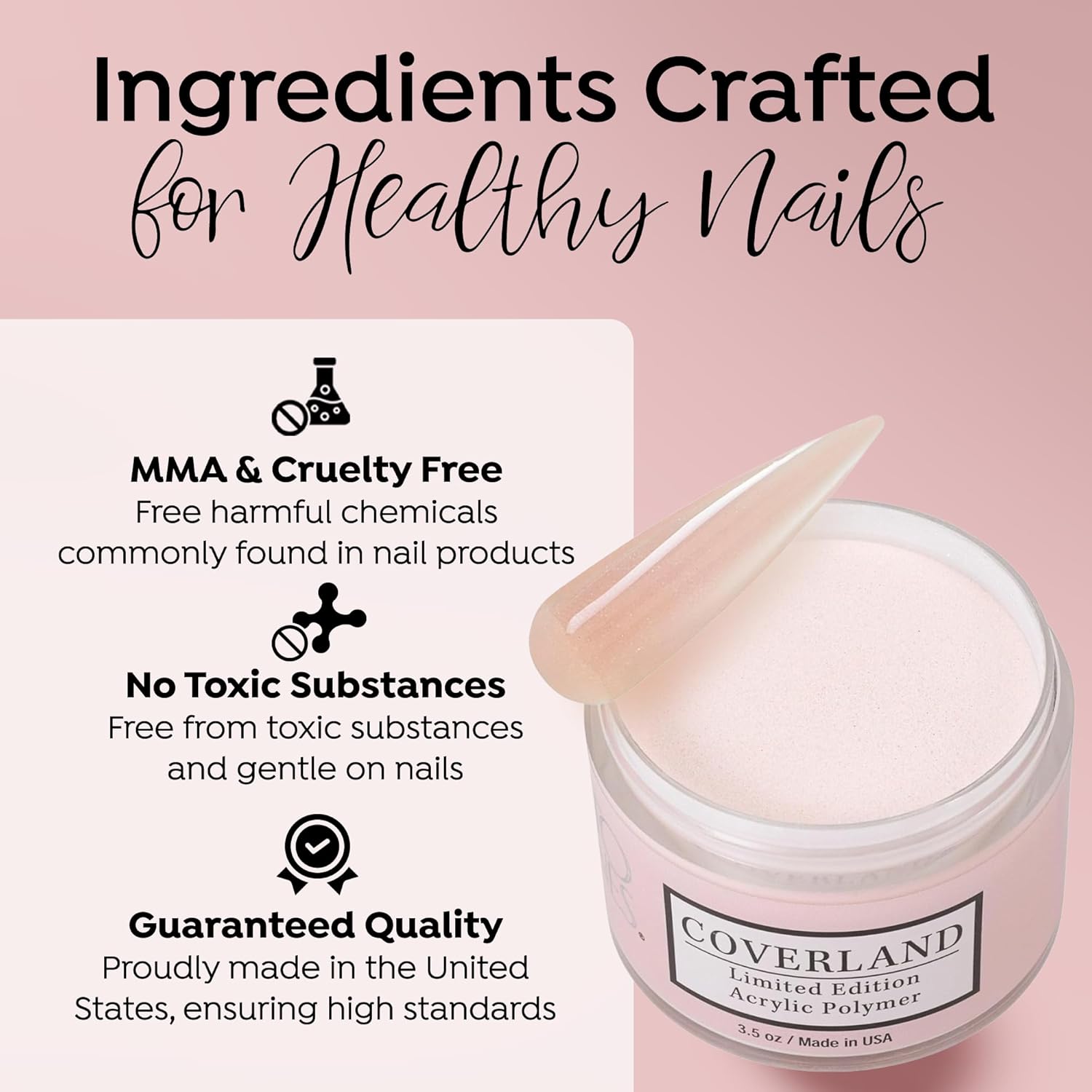 - āļøšššš šššššššš ššššš: The flexibility and adhesion properties of Coverland colored acrylic nail powder make it easy to shape nails with precision, and offers nice control for professionals who prefer to work with a polymerization rate of moderate to fast.