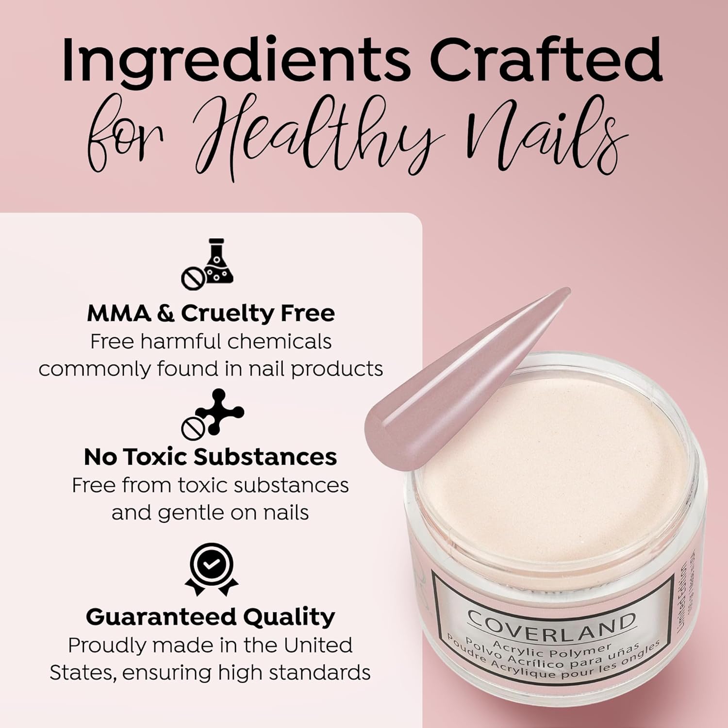 - āļøšššš šššššššš ššššš: The flexibility and adhesion properties of Coverland colored acrylic nail powder make it easy to shape nails with precision, and offers nice control for professionals who prefer to work with a polymerization rate of moderate to fast.