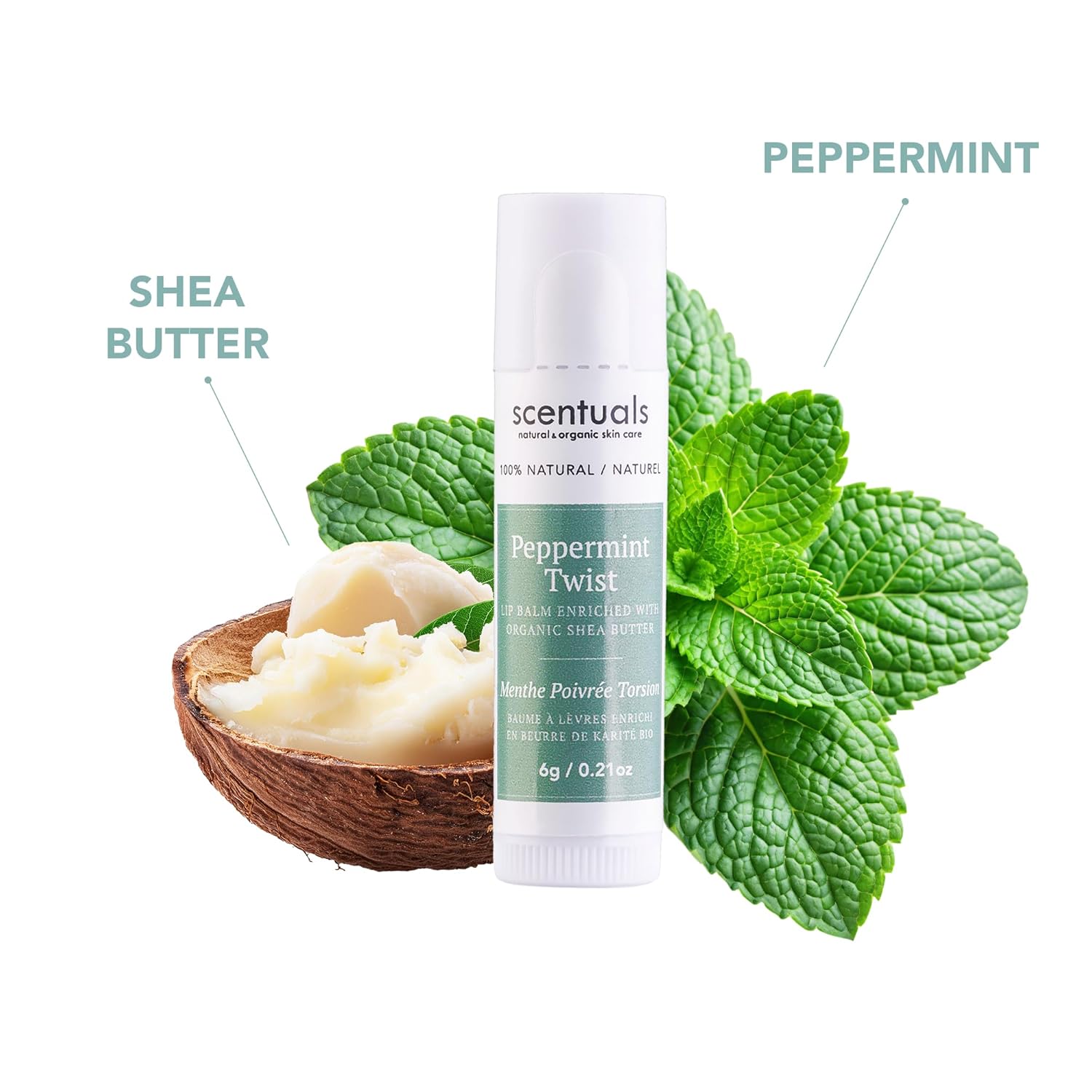 - RADIANT LIPS, NATURALLY: Peppermint Twist proudly showcases organic shea butter, comforting coconut oil, and rejuvenating jojoba oil. Shea butter restores suppleness, coconut oil soothes, and jojoba oil reveals radiant softness.