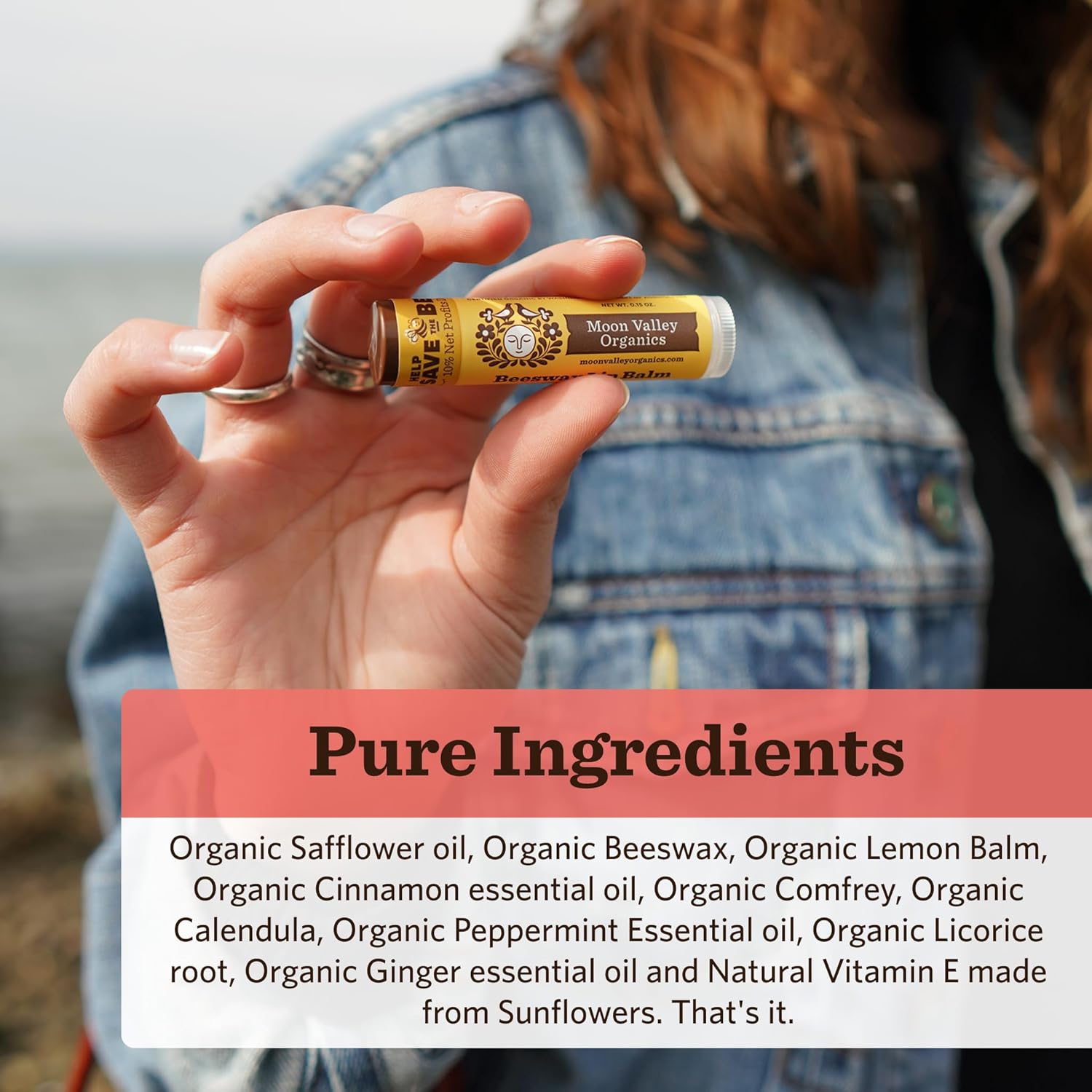 Moon Valley Organics Beeswax Lip Balm for Moisturizing Lips and Cuticles (ZINGY CINNAMON, 4 Count (Pack of 1))