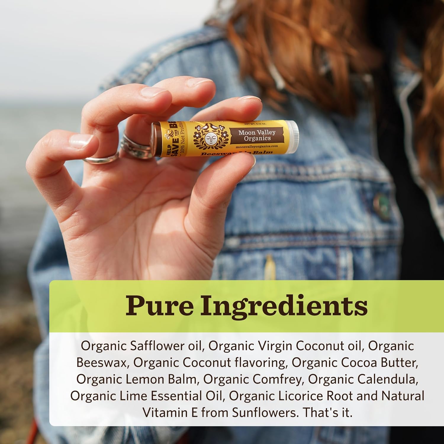 - TROPICAL COCONUT LIME LIP BALM: Moon Valley Organics lip balm in cool mint vanilla uses organic ingredients, including essential oils, to deliver maximum moisture to your lips and cuticles. This is a bundle of 6 x 0.15 oz sticks.