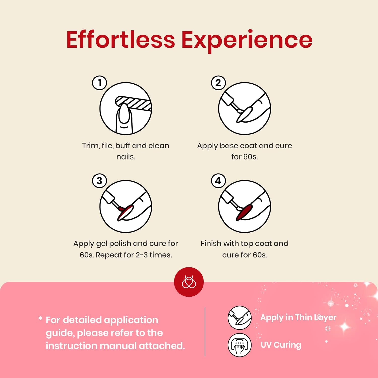 - Speed Curing with Led Nail Lamp: The Pastel peach pink nudes gel nail polish nail art kit need to be cured under Led/Uv light.