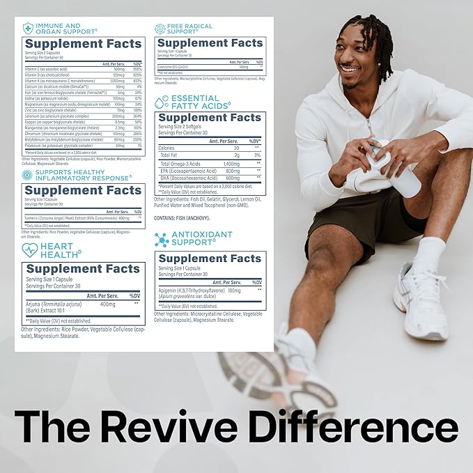 - An All-in-One Health Formula: Taking care of our body and health is the single most important thing we can do for ourselves. ReviveMD’s Essential Vitamins Pack (VitaPack) was designed to provide you with a complete health formula all in convenient, travel-friendly packaging. It's never been easier to take a healthy lifestyle on-the-go! 30 packets.