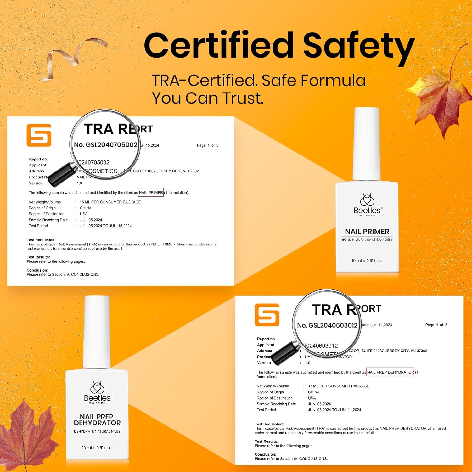 - Hema Free Formula: Beetles nail dehydrator and primer set use an Hema Free formula, which is naturally gentle and will not harm natural nails, while providing excellent cleaning effects, lasting for more than 30 days.