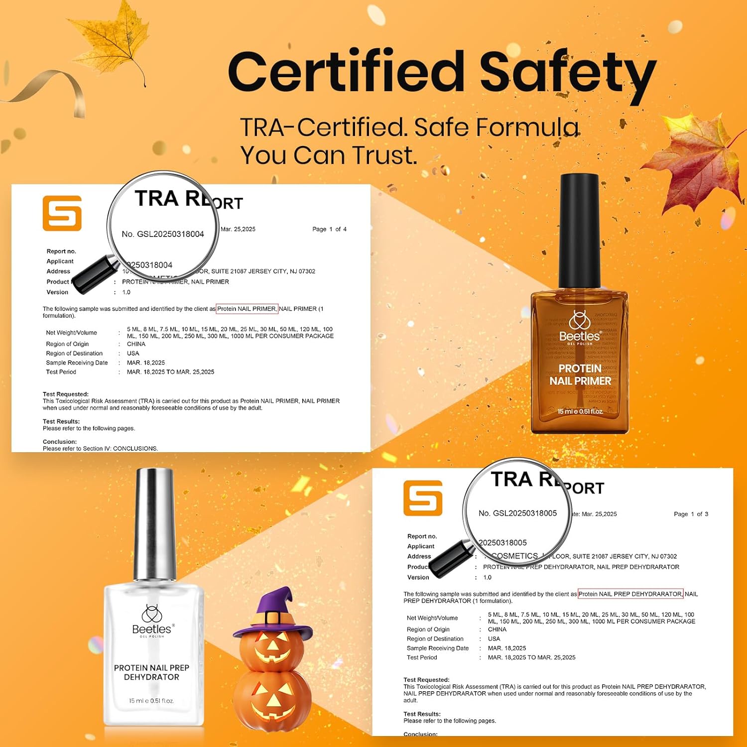 Beetles 15ml Protein Nail Prep Dehydrator and Primer Set - 2PCS Hema-Free & Acid Free Nail Bond Protein Prep Kit for Gel Nail Polish Acrylic Nail Supplies