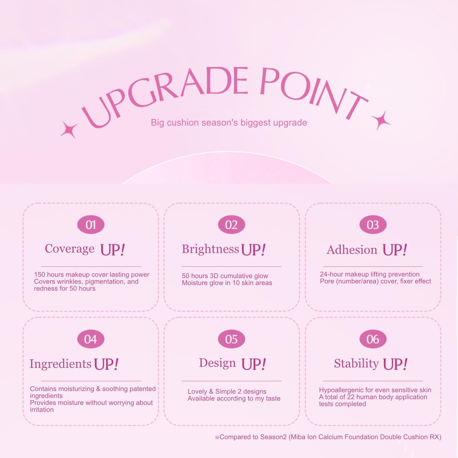 MIBA Ion Calcium Foundation Double Cushion Glow 25 g / 0.88 oz Big Cushion SEASON 3. Long Lasting Cover Effect. Moisture glow. Skin tightening relief. Smooth adhesion. (Luxury #23 Rosy Beige)