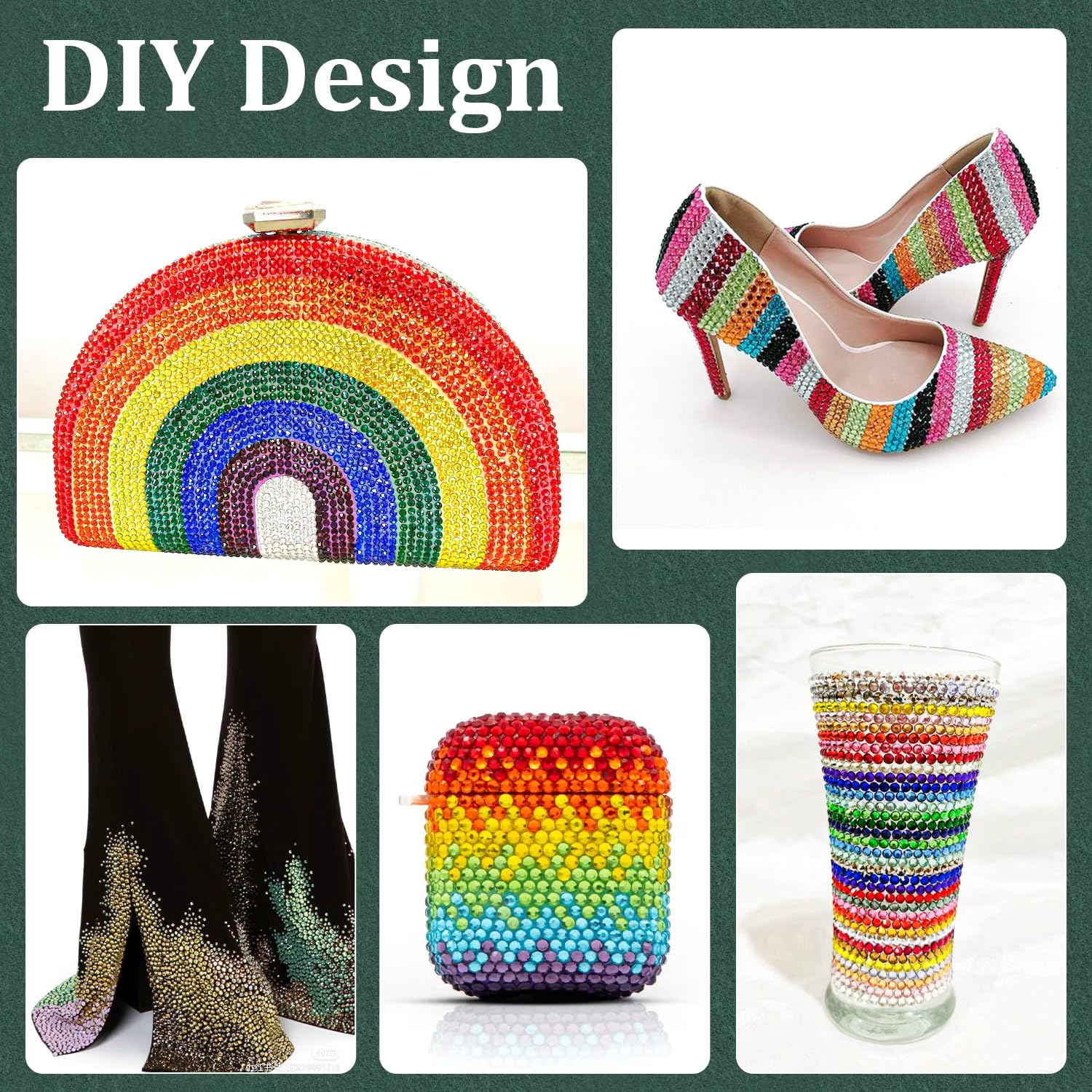 - 🧡WIDE APPLICATION -- These sparkling iridescent resin crystals are perfect for creating dazzling looks. Use them for bedazzling DIY crafts like shoes, tumblers, mugs, bottles, phone cases, popsockets, scrapbooks, photo frames, diamond paintings, greeting cards, bags, glasses, guitars, keychains, hats, masks, hair clips, bracelets, wristbands, clothing, wedding dresses, and more. Apply it to what you want to bling!