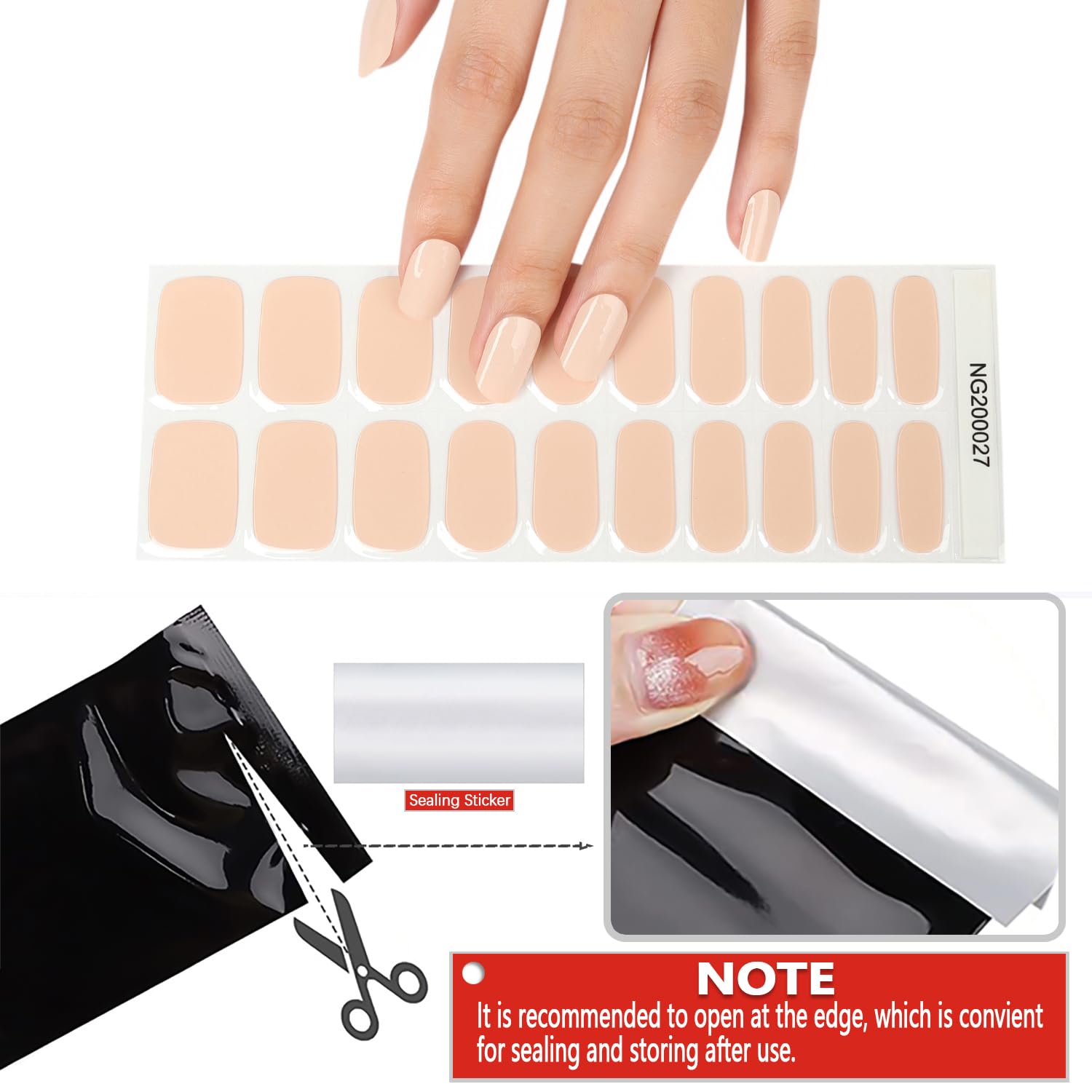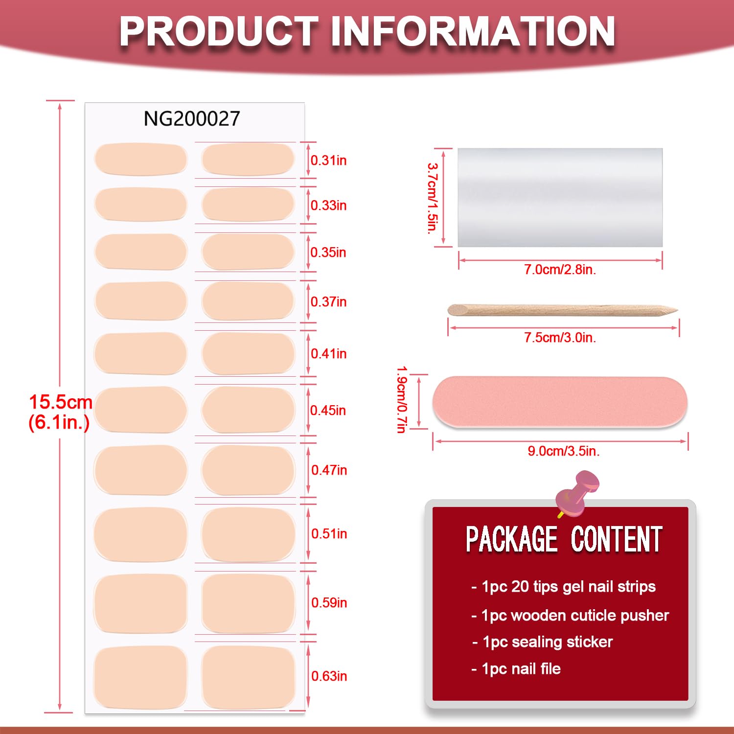 WOKOTO 20 Pcs Bisque Semi Cured Gel Nail Polish Strips With Nail File & Wooden Stick Holographic Gel Nail Strips UV Gel Nail Stickers Full Nail Wraps Stick On Nail Polish Stickers For Women