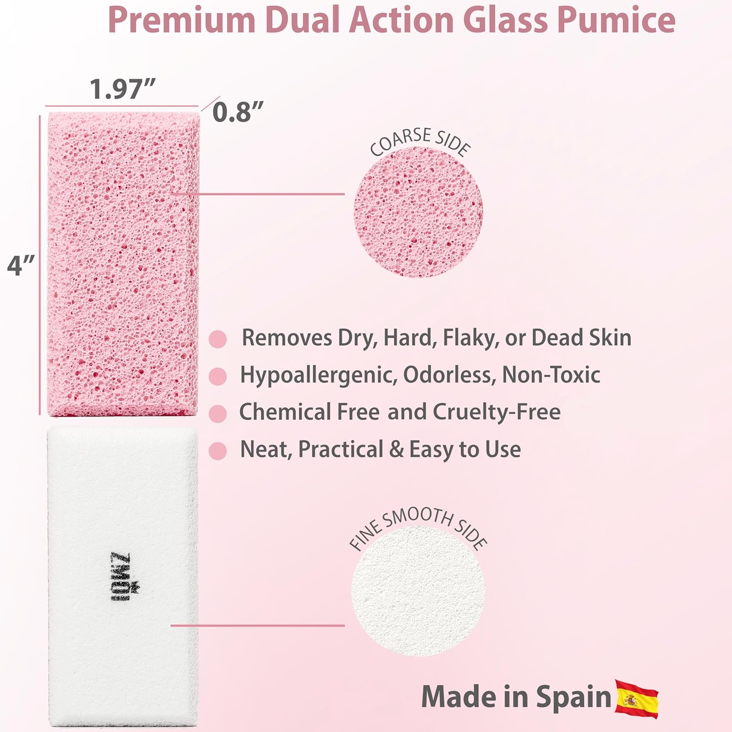 - Dual-Sided Skin Exfoliator – This is a unique pumice stone for women and men in that it features a rough exfoliation side to remove hard, dry, or thick skin patches and a soft fine pumice stone side that lets you buff and polish it to a natural vibrance.
