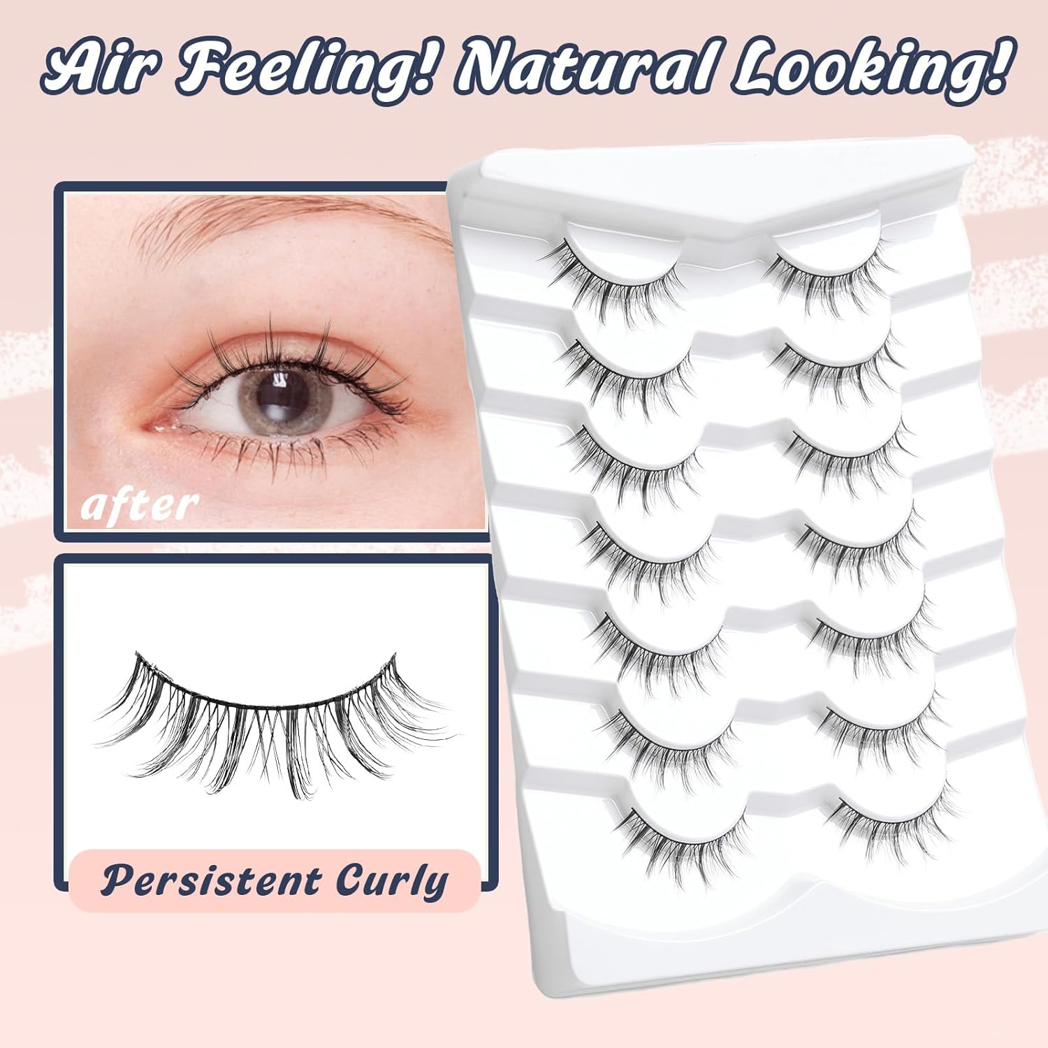- VEGAN & REUSABLE: 7 pairs lashes pack. The fake eyelashes use ultra-light faux mink fibers, cruelty-free, skin friendly, suit for DAY-TO-DAY use, party and so on
