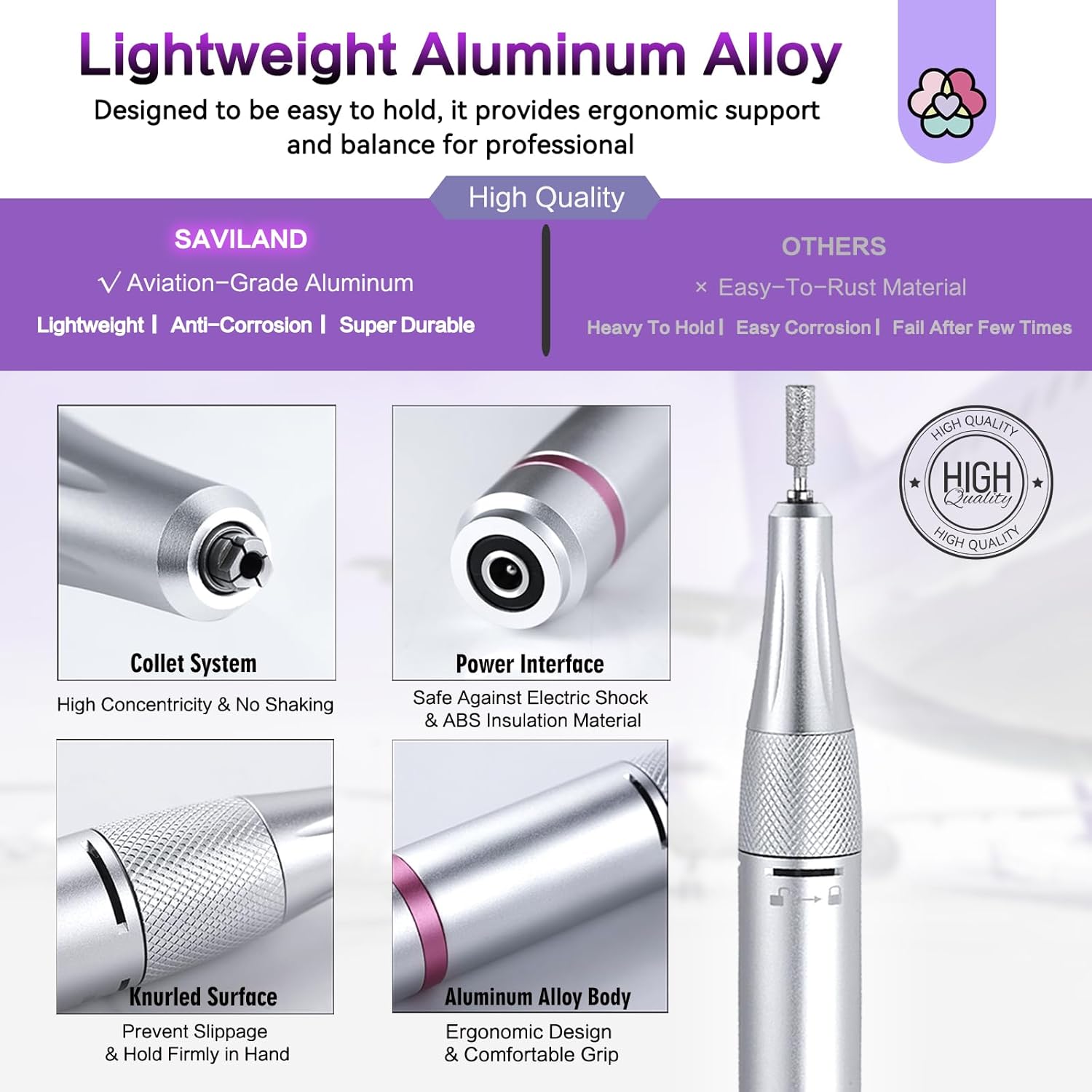 SAVILAND Portable Electric Nail Drill: 35000RPM Nail Drill 10 Hours Efile Portable Rechargeable Nail Machine 13 Drill Bits Ceramic Drill Bit Grey Purple Nail File Home Use Manicure Pedicure