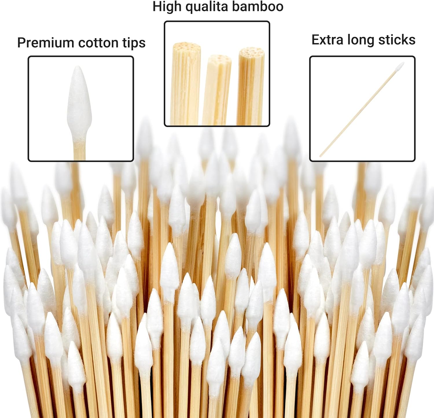 500/1000 Count 6'' Long Round/Pointed Cotton Swabs Durable Stem, Lint- Free Gun Cleaning Swabs Pure Cotton Tips for Gun Maintenance, Makeup, Pet Care, Equipment (Detailed Work)