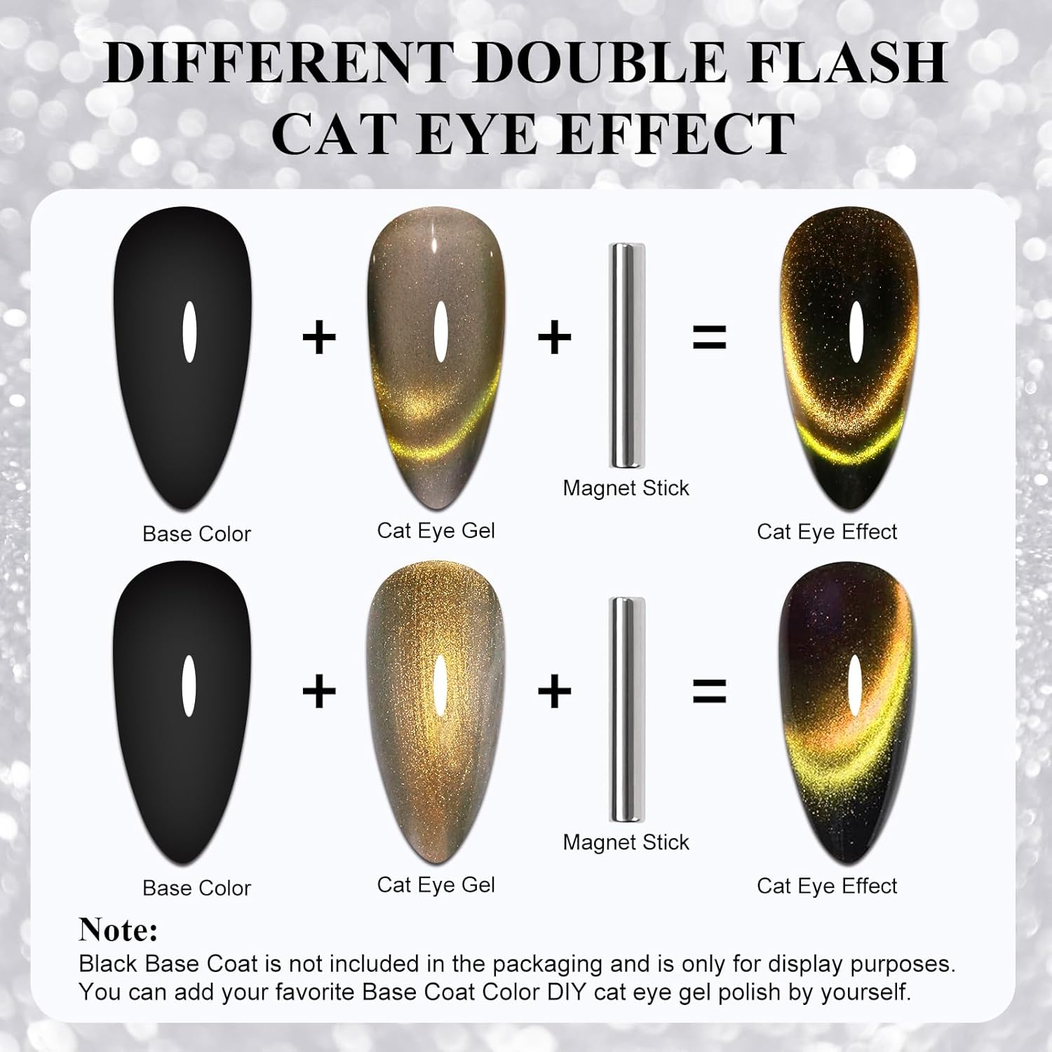 - 9D Cat eye Gel Polish Set - 15ml 9D Cat's Eye Gel Nail Polish + 1 x Magnetic Wand,Our Gel Nail Polish is perfect for any occasion, whether it's a formal gala, a night out with friends, or a casual day at the office. your nails like a blossom jelly, it is a translucent clear nail gel. One layer, two layers and three layers are different effect.