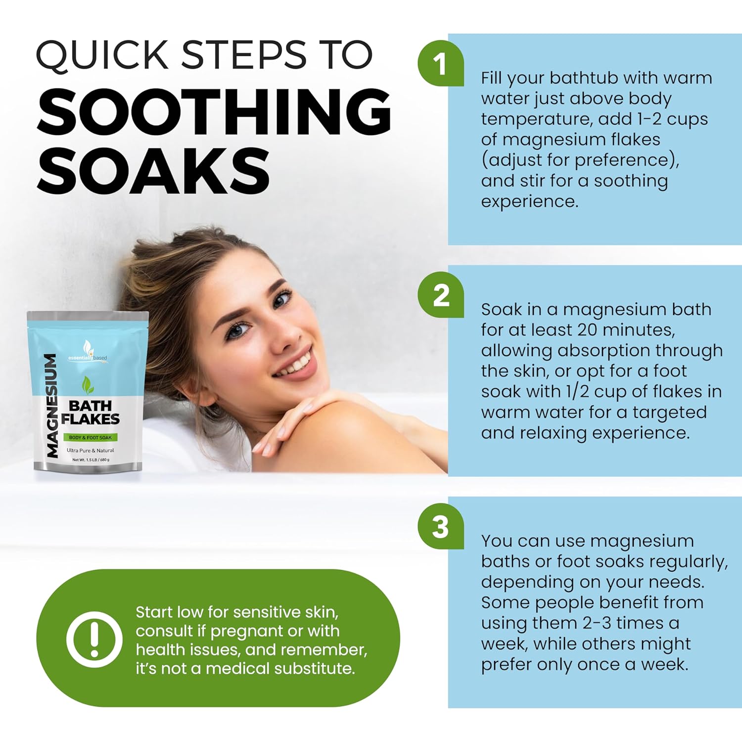 - Our pure magnesium flakes for bath promote relaxation and relieve muscle tension with our high-quality magnesium soak. These magnesium bath flakes have the potential to revolutionize your bathing experience.