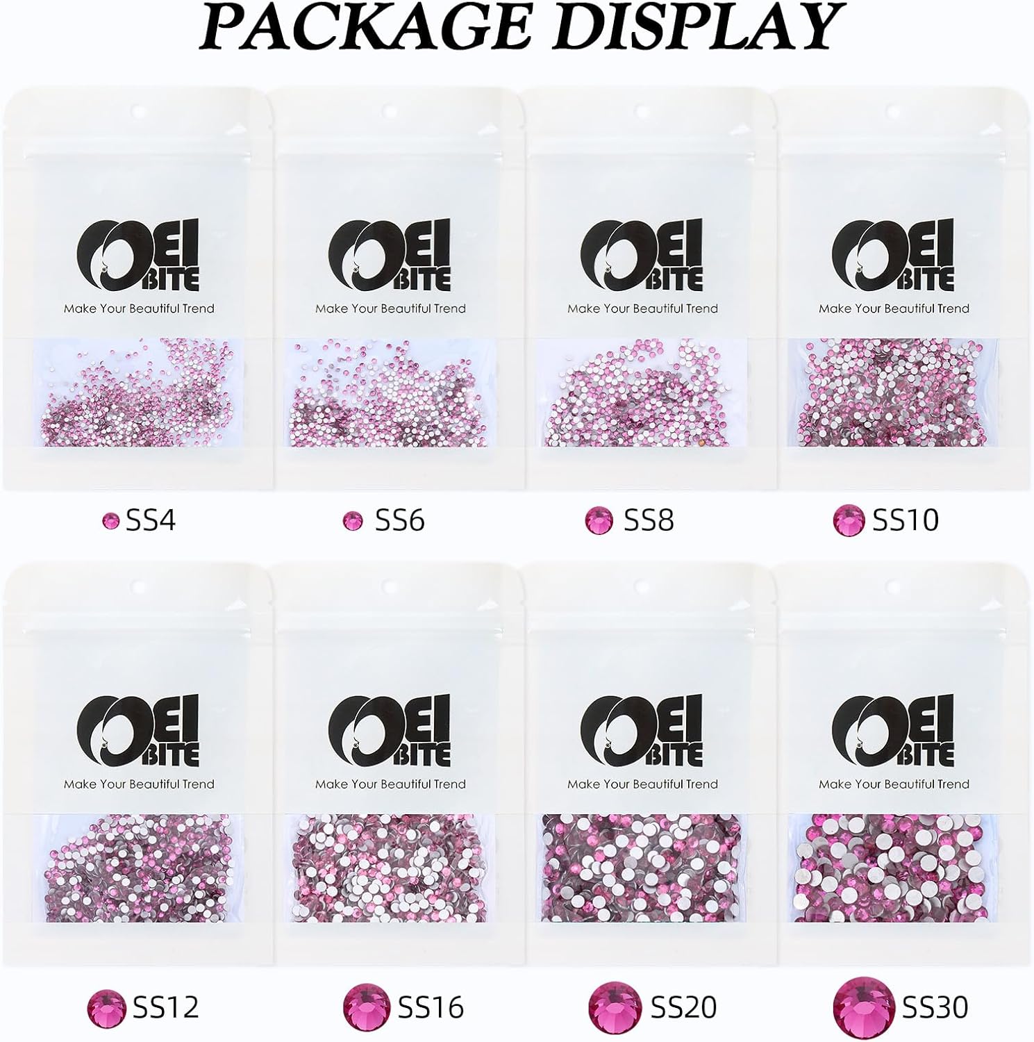 Fuchsia Flatback Rhinestones, Glass Rhinestones for Nail Art and Craft, Glue Fix, Loose Crystal Gemstones(Fuchsia, SS16, 1440pcs, 3.8-4.0mm)