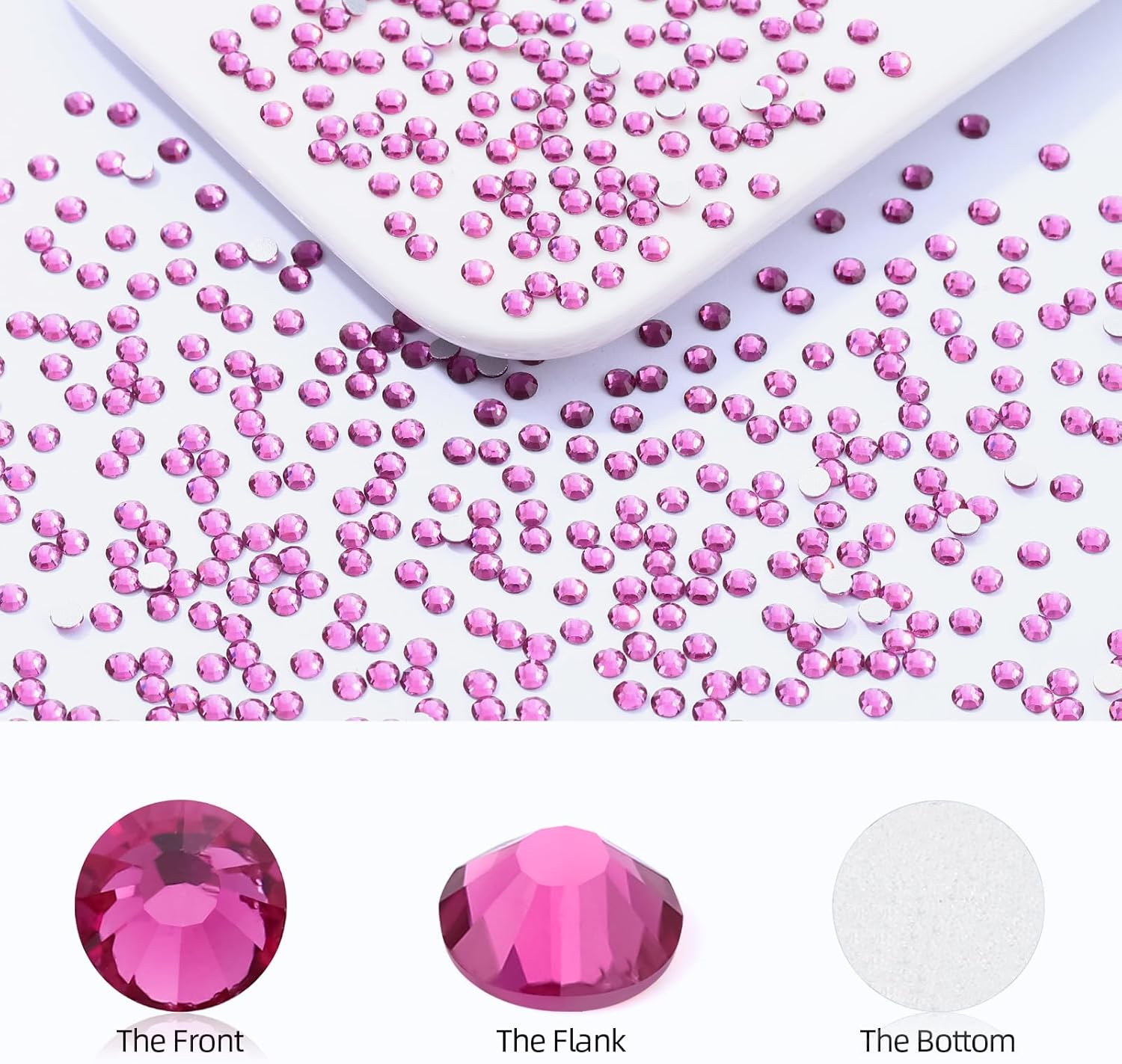 Fuchsia Flatback Rhinestones, Glass Rhinestones for Nail Art and Craft, Glue Fix, Loose Crystal Gemstones(Fuchsia, SS10, 1440pcs, 2.7-2.8mm)
