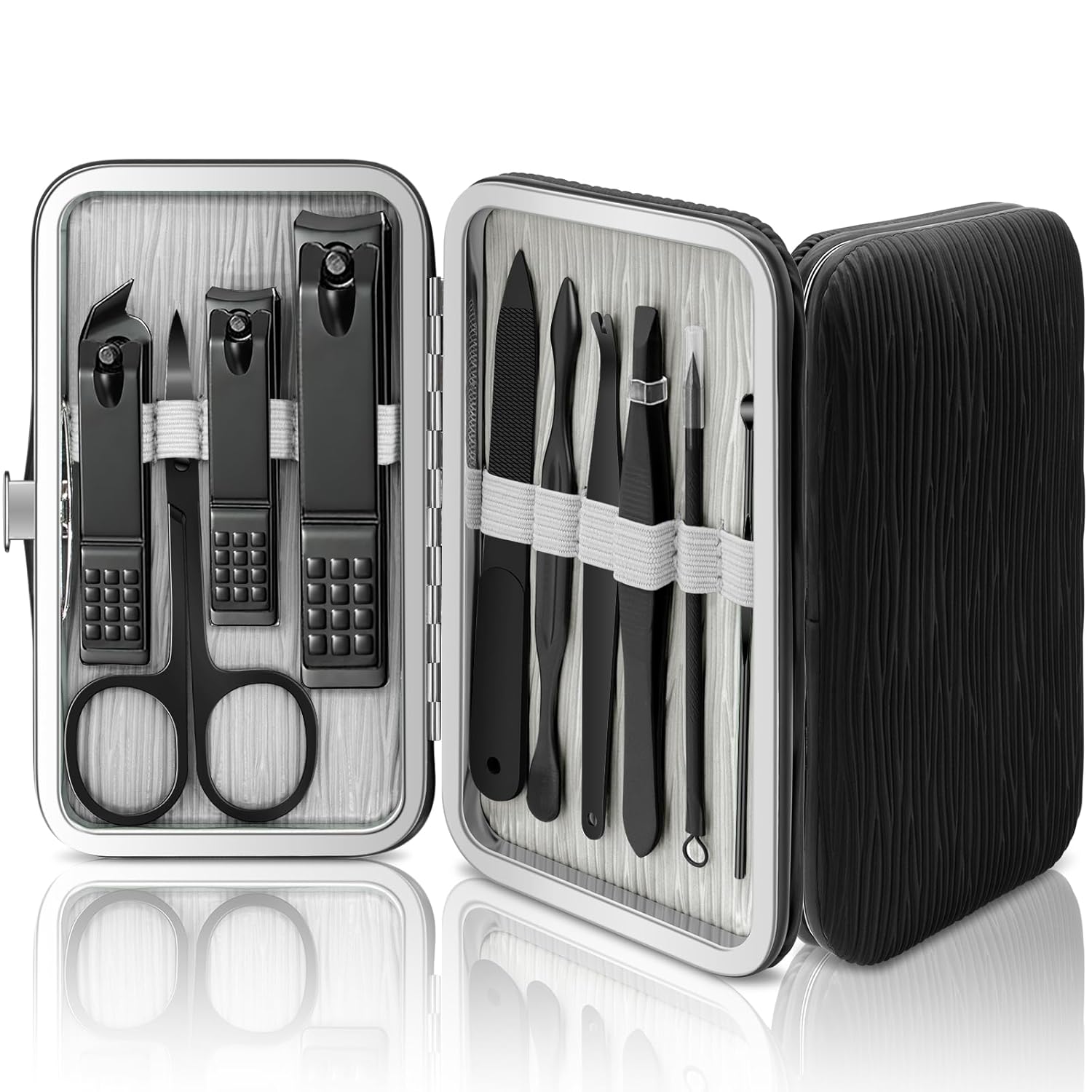 BLESWIN 10 in 1 Manicure Set, Professional Manicure Pedicure Kit for Women, Nail clipper Set for Men, Nail Care Kit with Leather Travel Case, Travel Nail Kit for Friends Parents Gift (Black)