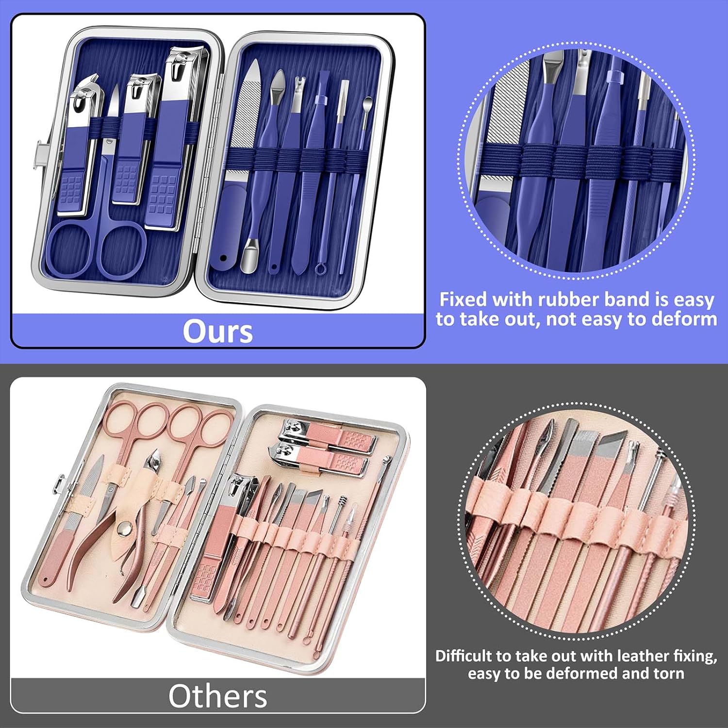 - Professional Nail Kit Manicure Set: Nail set manicure made of high-quality material. Manicure pedicure kit have 3 different nail clippers, including large nail clipper, small nail clipper and diagonal nail clipper. Nail clipper set are sharp and durable. Keep your nails trimmed and free of spills, cracks and hangnails.