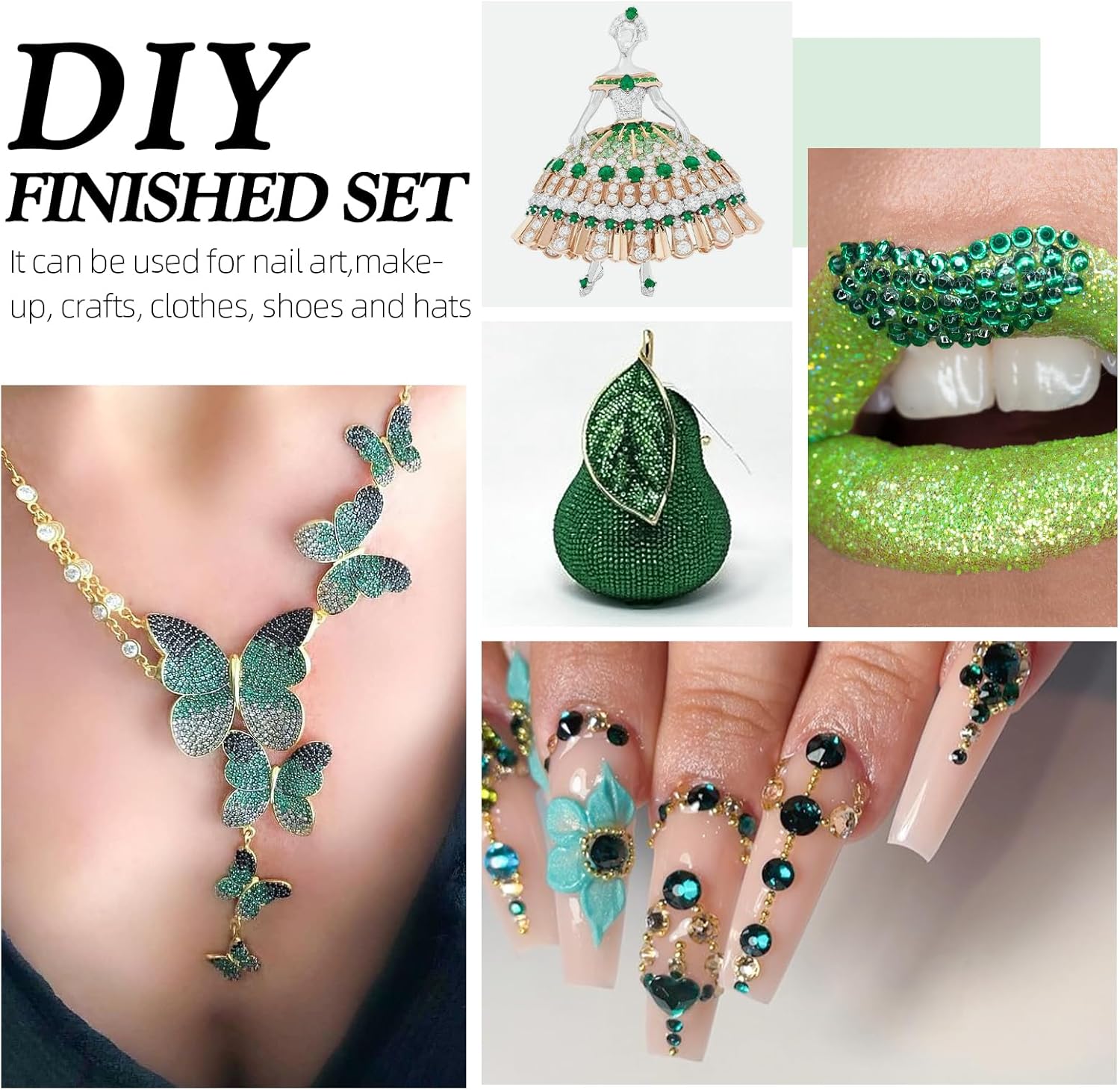 Green Flatback Rhinestones, Glass Rhinestones for Nail Art and Craft, Glue Fix, Loose Crystal Gemstones(Green, SS8, 2880pcs, 2.3-2.5mm)