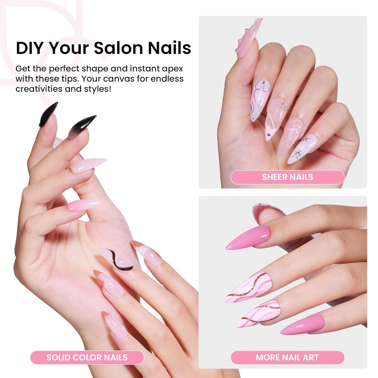 Beetles Tipex Instant Apex Nail Tips Kit Halloween Nails, Medium Stiletto, 224 Pcs 16 Sizes Pre-Building Pre-Etched False Nail Tips with Tipex Nail Glue, Mini Nail Lamp