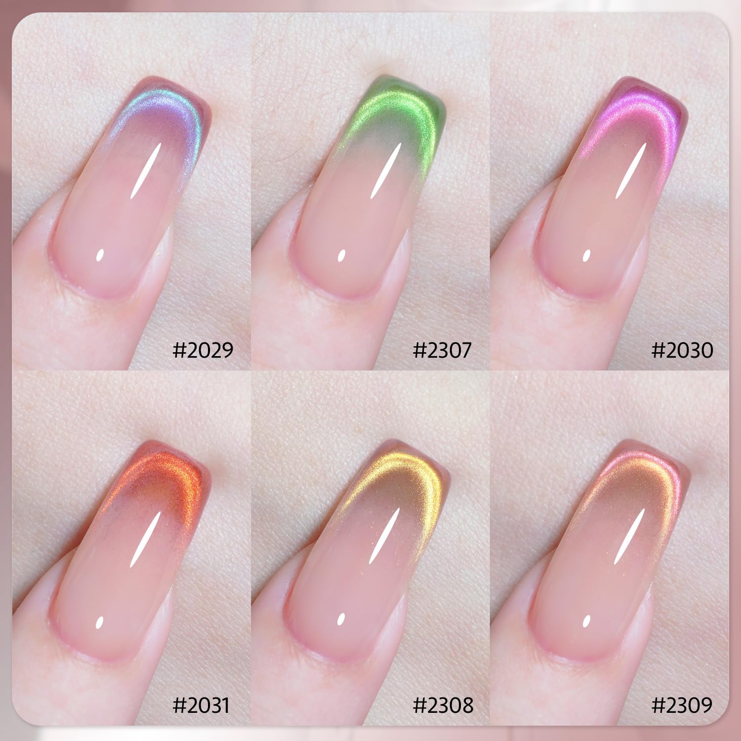 - Package Includes: 6 gel polish colors of 0.25 fl.oz (7.3ml) each + cat eye magnet. Professional gel nail set to enjoy the nail art from the comfort of your own home!