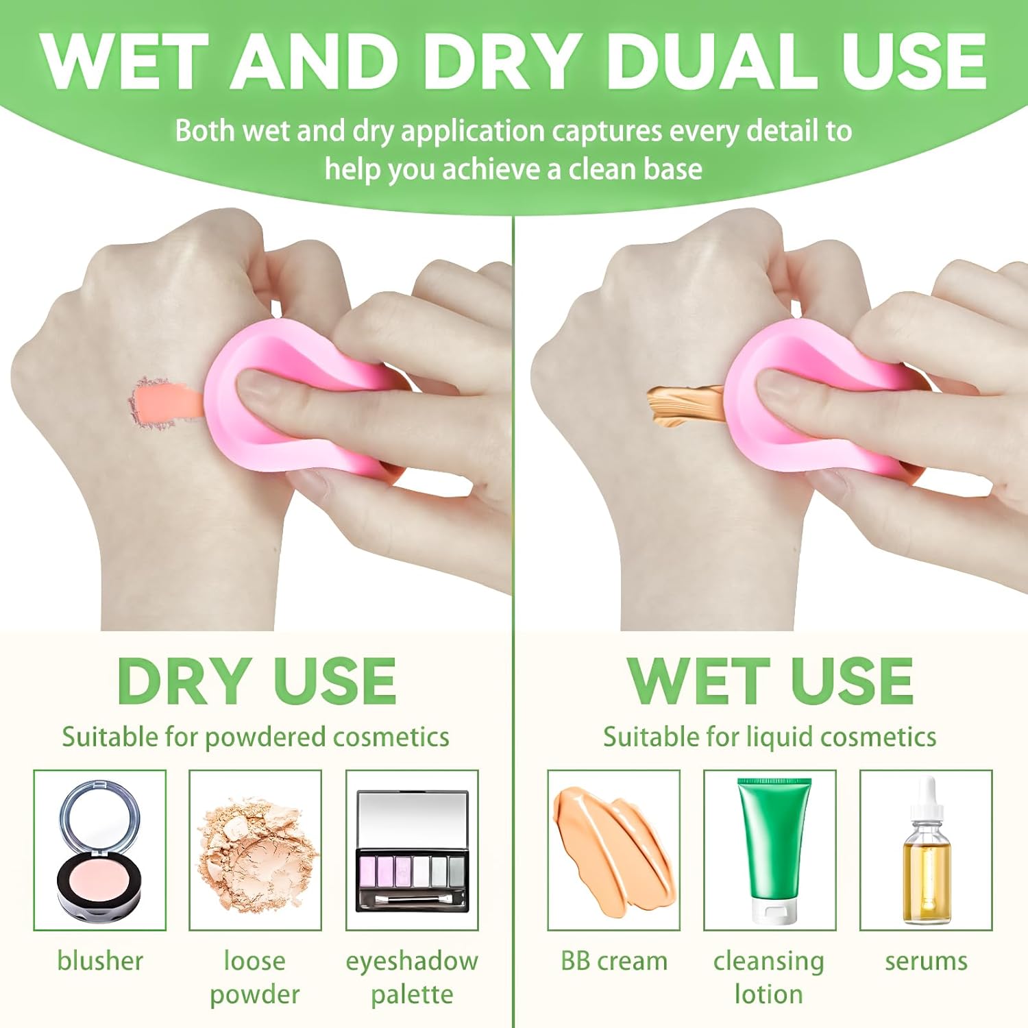 - Wet and Dry Dual Use: Both wet and dry application captures every detail to help you achieve a clean base. Suitable for powder, cream or foundation, can be used for all makeup types
