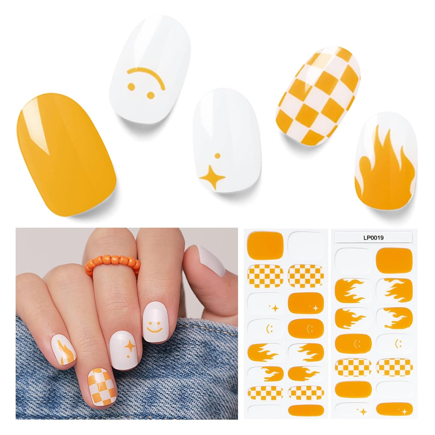 Semi Cured Gel Nail Strips, 30pcs Gel Nail Wraps, 2 Weeks Long Lasting Ice Age, Smile Bomb