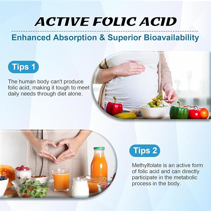 - Enhanced Absorption for Optimal Nutrient Utilization: Active folic acid is a form of folic acid that is more readily absorbed and utilized by the body. L-methylfolate, a biologically active form of folate, undergoes specialized processing to ensure it converts efficiently into the active form required by the body. With higher bioavailability, active folic acid offers superior absorption and effectiveness for optimal health support