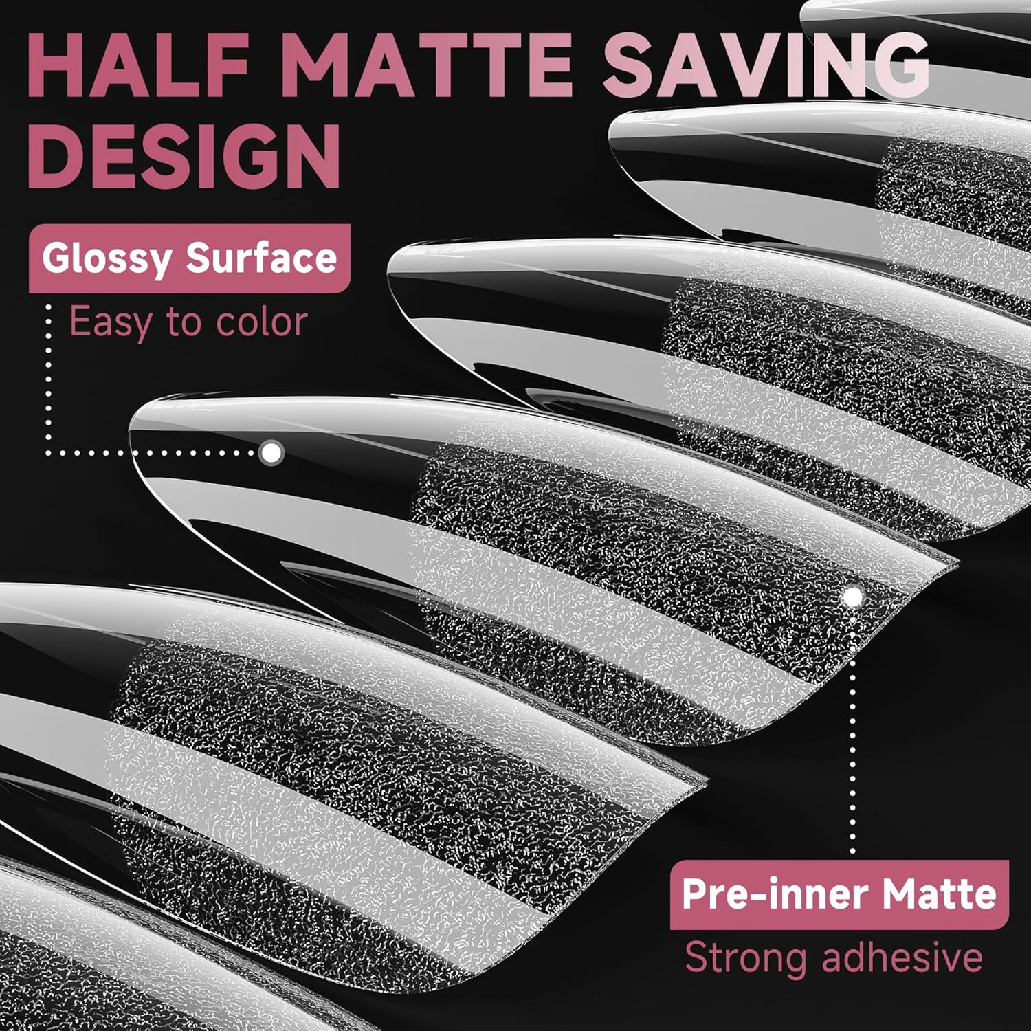 - ❤️HALF MATTE GEL NAIL TIPS-Our medium almond shape nail tips pre-shape half matte saving design, no extra filing required! The clear almond nails surface with a glossy finish for easier to color. The inner deep matte firmly adheres to the nail without worrying about the nail pop off easily. Easily get beauty that lasts 28+ days. We are committed to bringing you professional, efficient and safe nail care.