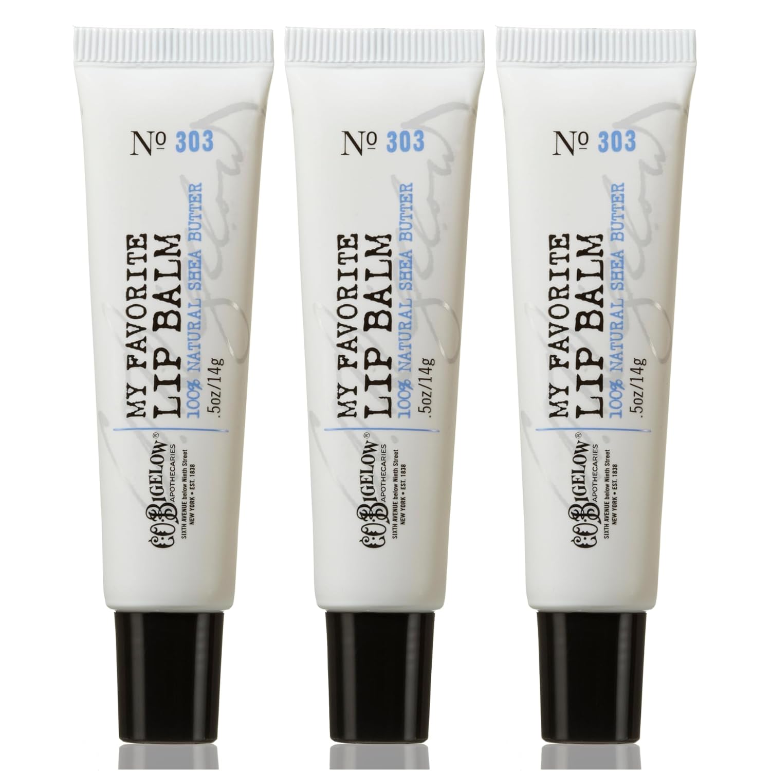C.O. Bigelow My Favorite Lip Balm Tubes, Pack of 3 Bulk Lip Balm Tubes with Shea Butter & Jojoba Oil, 0.5 oz
