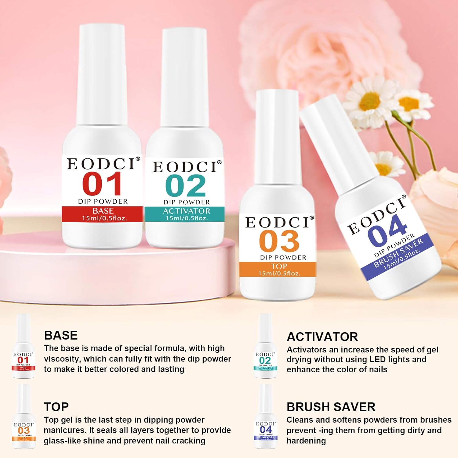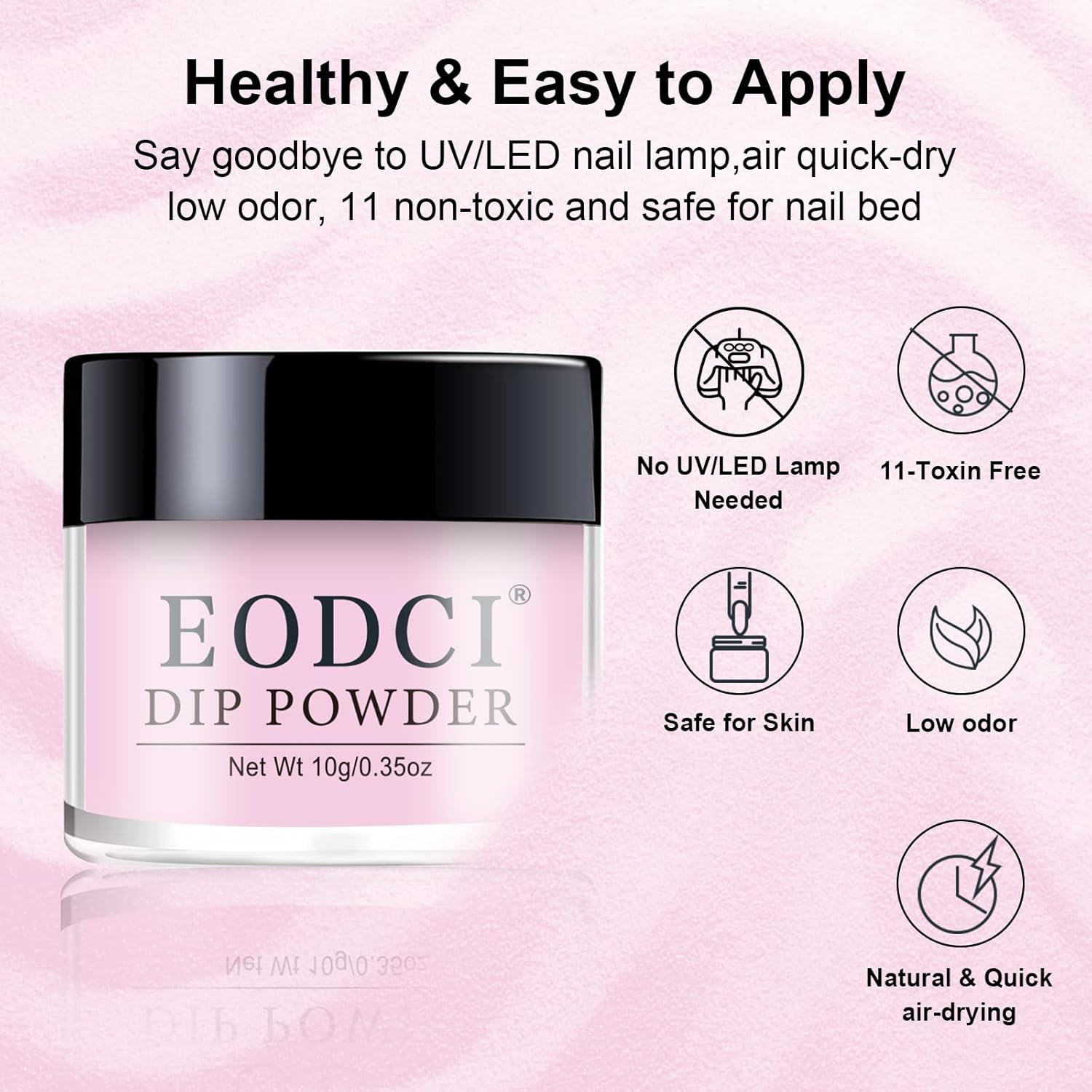- 【No Lamp Needed】Eodci Nail Dipping Powder does not require UV/LED light to cure, is skin friendly while avoiding skin darkening and damage, safe and easy to use, suitable for beginners and professional nail salons.
