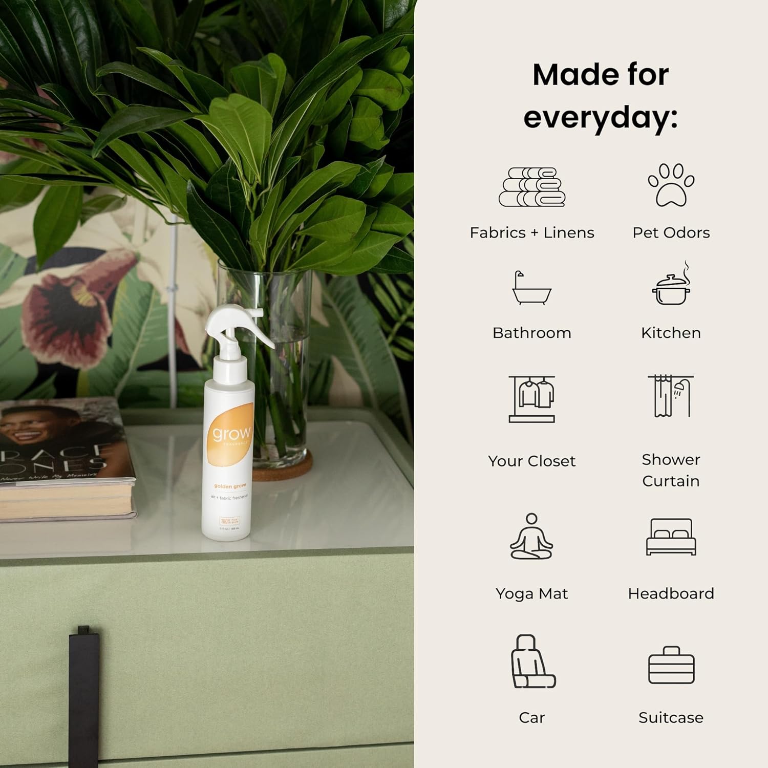 Grow Fragrance 100% Plant-Based Air Freshener Spray | Freshen Fabric & Rooms | Golden Grove Scent - Citrus, Fruits, Watery Green Notes | Made with Natural Essential Oils - 2 Pack, 5 oz each