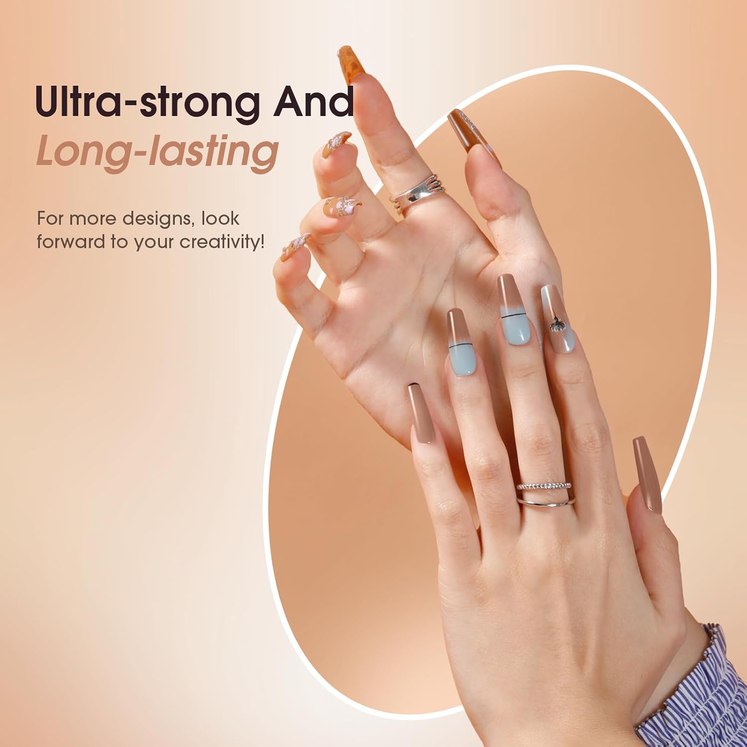 - Warm Tips: It is common for gels to be sticky. so dipping you brush into the gel solution will help you push the gel more smoothly. Or you can seal the gel tube and soak it in warm water before use, which will make it more fluid and help you squeeze out the poly nai gel more smoothly. Both sides of the nail need LED light or UV light to cure for about 120s to completely dry. The lighting time needed depends on the thickness of the gel.