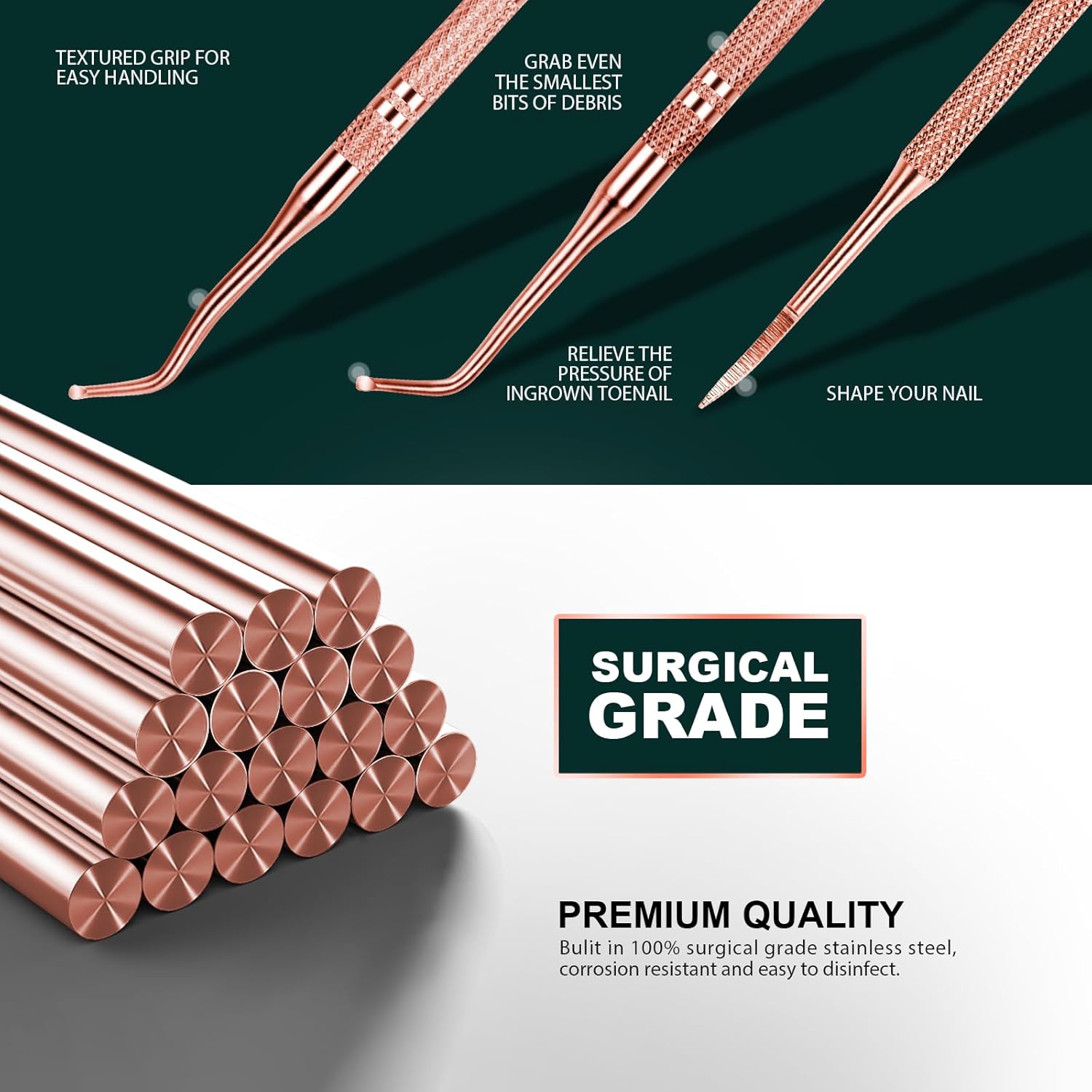 - Professional Surgical Safe Ingrown Toenail Treatment: Teenitor ingrown toenail removal kit is made of surgical-grade stainless steel that never rusts and is easy to sterilize. It features a non-slip curved design that is easy to grip and easy to use. You can clean ingrown toenails and under nails at home by yourself with debris and deep dirt