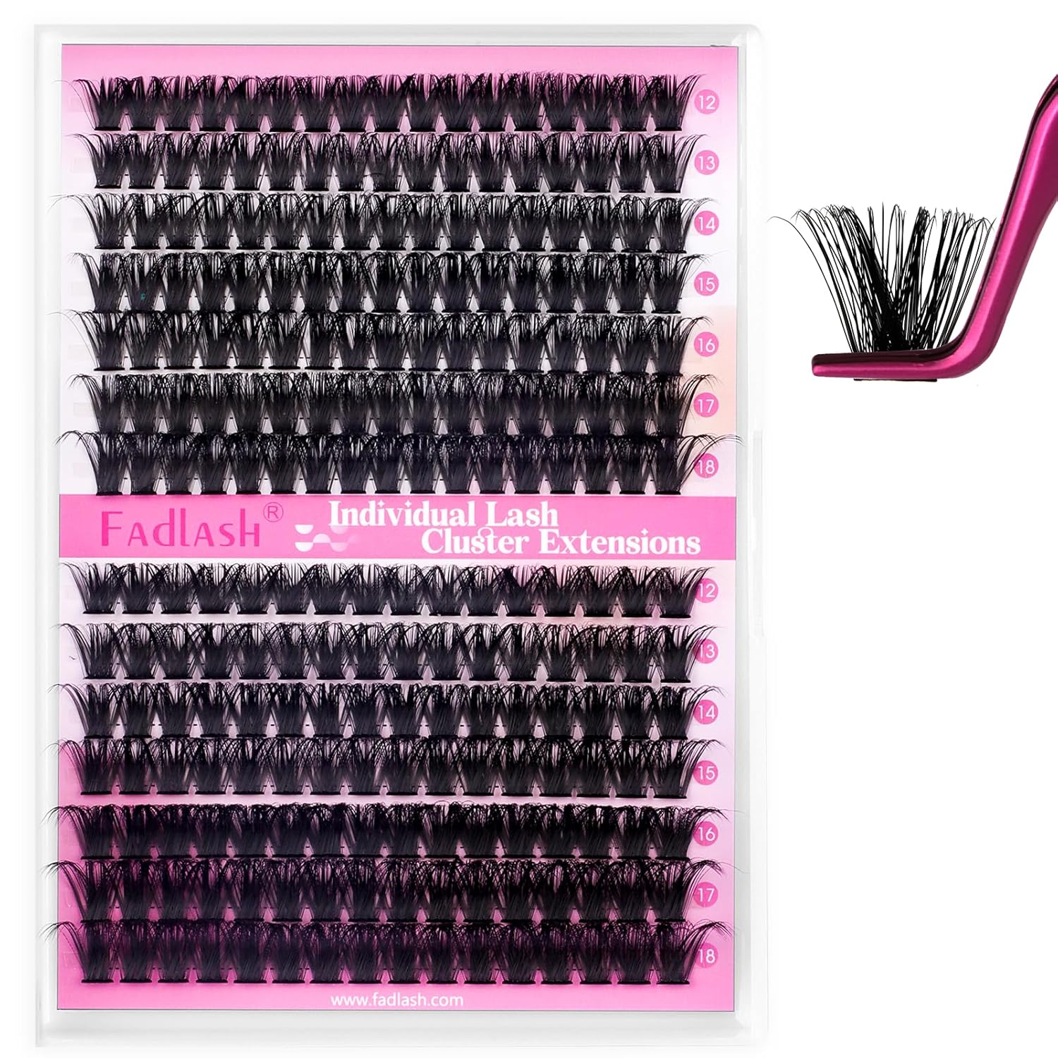 FADLASH Cluster Lashes D Curl Wispy Individual Lashes DIY Eyelash Extension Natural Look Reusable Fluffy Cluster Eyelash Extensions Self Application At Home (80D+100D-0.07D-12-18MIX)