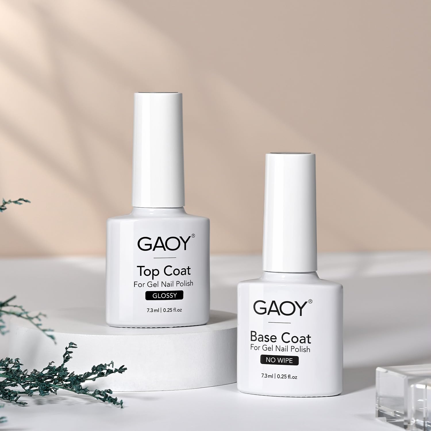 GAOY Gel Top Coat and Base Coat Set, 2 Pcs 7.3ml Glassy Top Coat and No Wipe Foundation Combination for UV Light Cure Gel Nail Polish