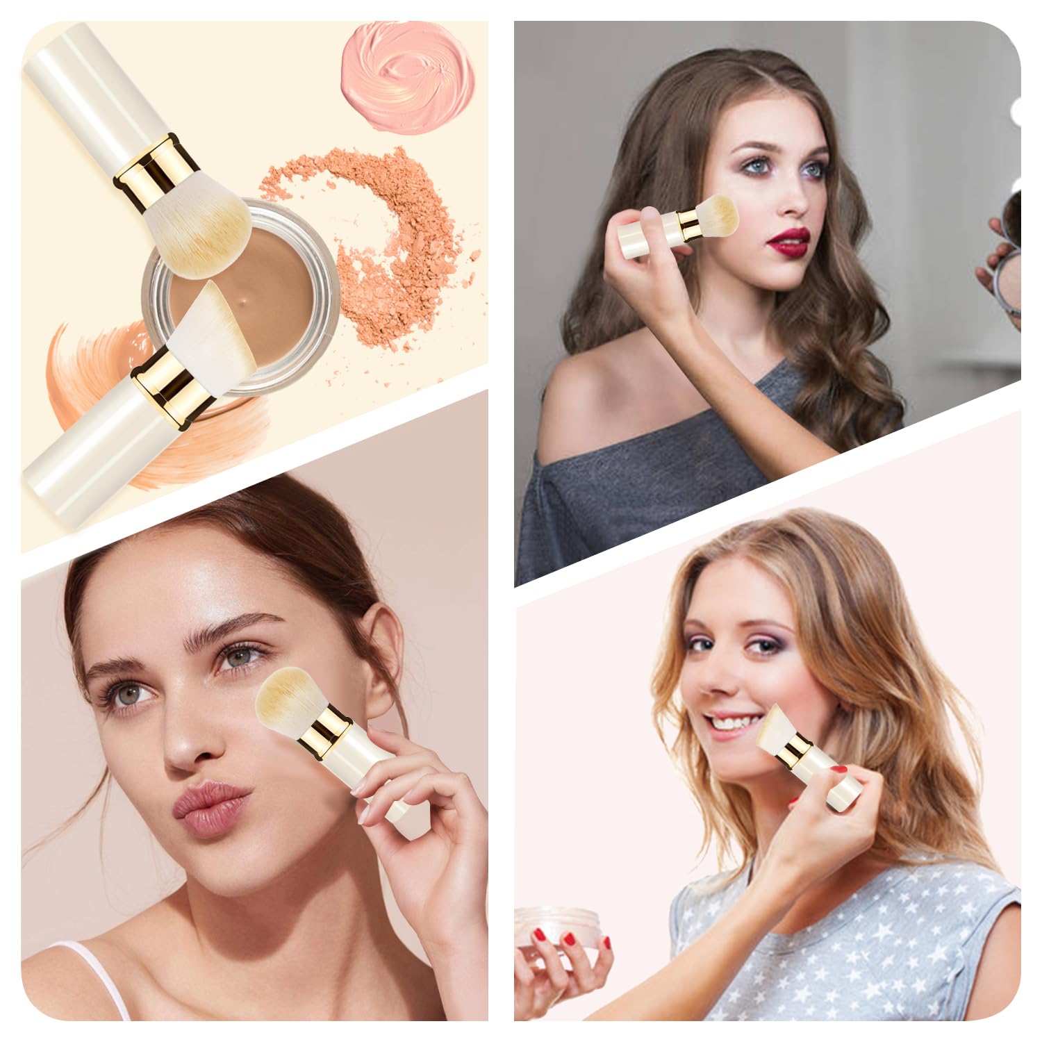 Makeup Brush, Retractable 2 Pack Travel Kabuki Powder Makeup Brush, Foundation Face Blush Brushes for Blending Liquid, Blush, Bronzer, Buffing, Sunscreen,Flawless Cosmetics