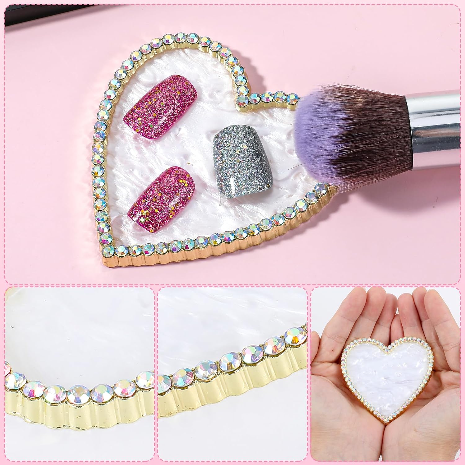 - Versatile Gel Nail Design: With a focus on gel nail art, this palette features a compact size (2.95x2.87x0.28 inches) ideal for travel or on-the-go mixing. The heart-shaped nail plates for nail art layout adds a touch of charm, making it a stylish addition to any beauty routine.