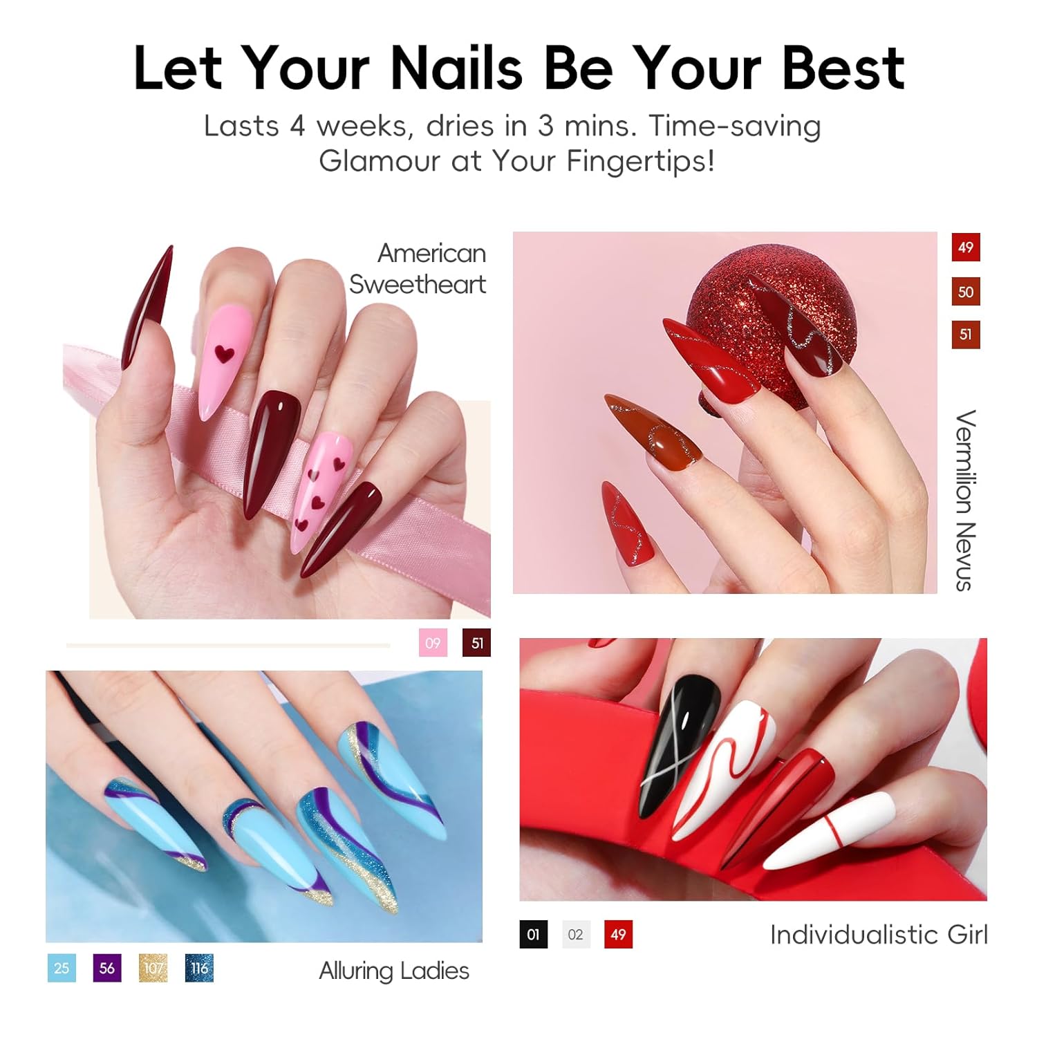 - 【Choice for Her】Our gel nail polish set is an ideal choice. With its extensive color range and complete set of tools, it suits different styles and preferences. Whether it's for a holiday, work, entertainment, travel, or vacation, our nail set is a thoughtful choice that will delight any nail art enthusiast, a good choice for birthdays, anniversaries, Valentine’s Day , Mother’s Day, Halloween, Thanksgiving, Christmas, New Year's Day etc