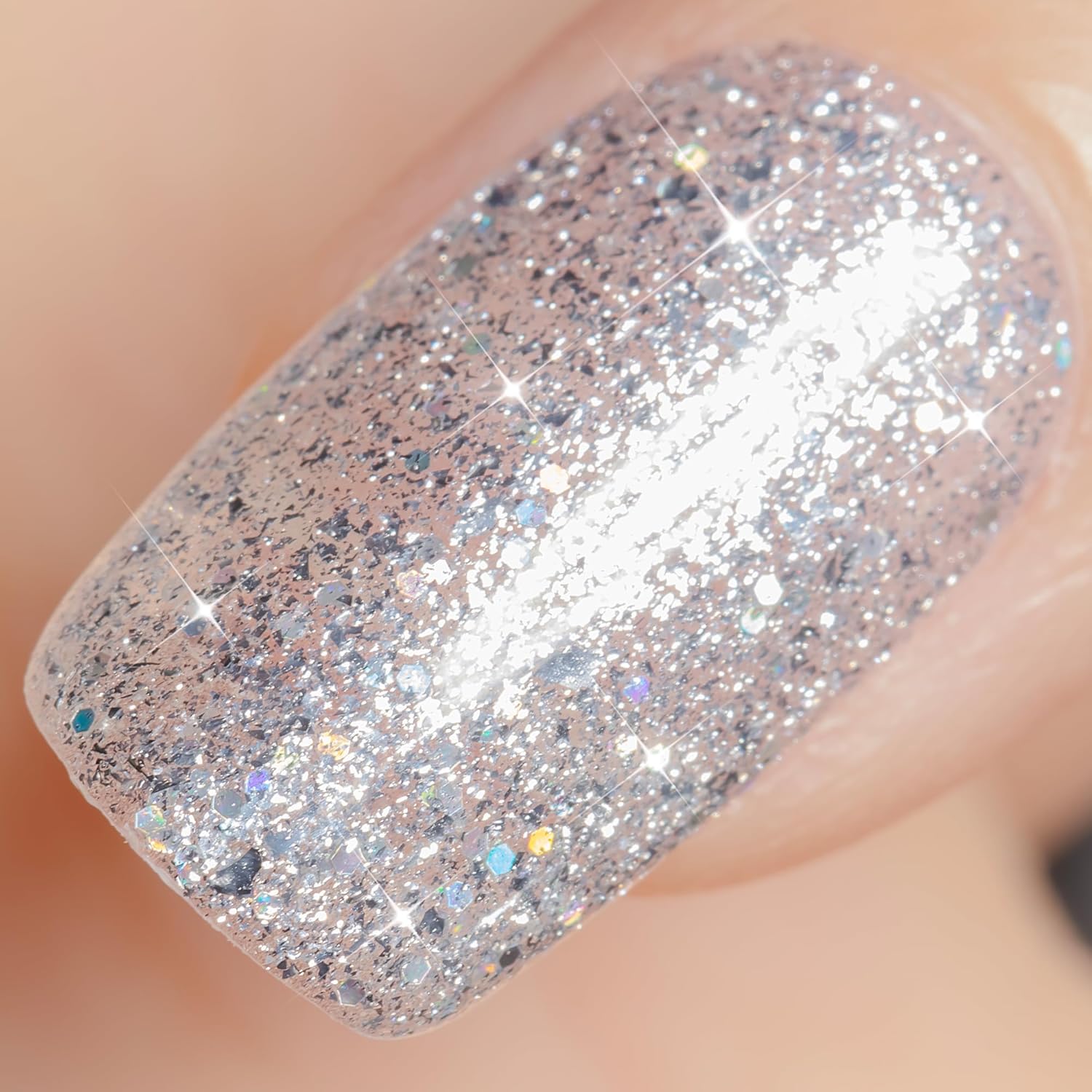 YTD Likomey Gel Nail Polish,15ml Colorful Silver Glitter Nail Gel,Fall Winter Shiny Sparkly Salon Home DIY Manicure UV Color Varnish,SF438
