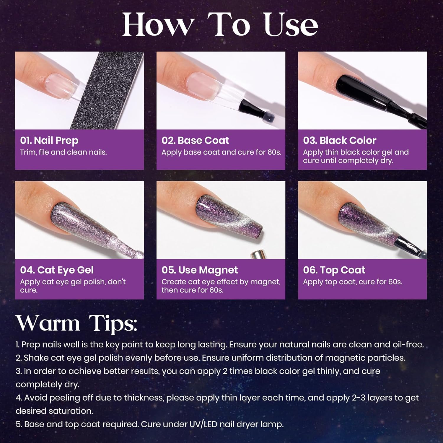 MIZHSE Aurora Cat Eye Gel Nail Polish, 2 Colors Magnetic Gel Polish with Magnet, Holographic Shimmery Shiny Effect Soak Off Nail Art Manicure Home
