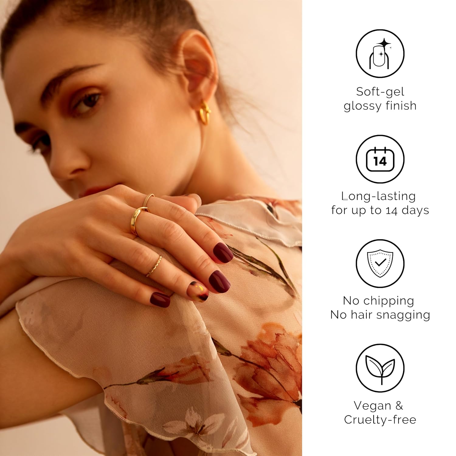 - ❤SALON QULITY: Made of real nail polish 60% precured, soft to fit all nail shapes - Nailog semi cured gel nail strips with waterproof top gel last up to 2 weeks once cured with a UV lamp. Our gel nails are also extremely lightweight so they do feel like your own nails!