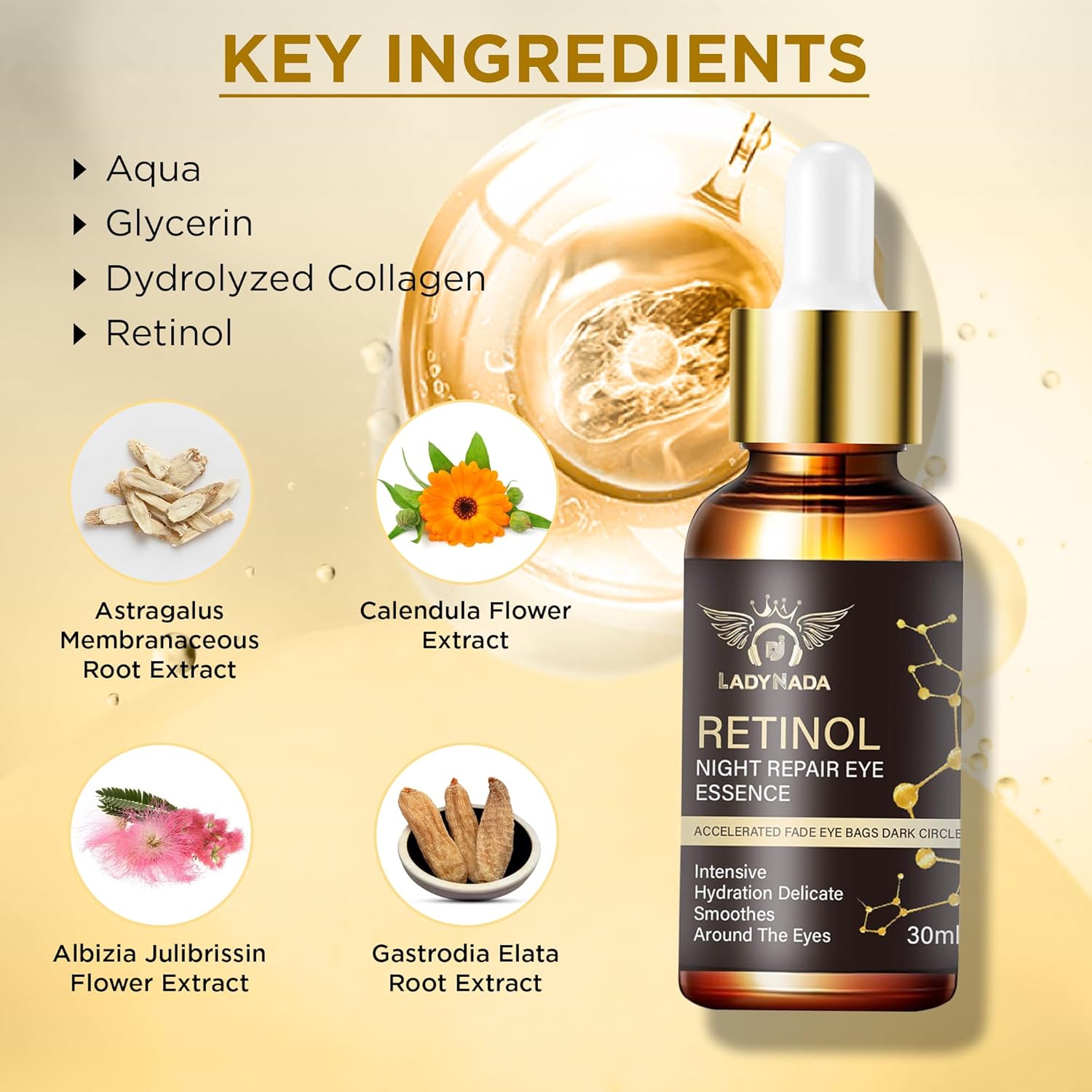- ✅ 1. INSTANT OVERNIGHT EYE REPAIR Wake up to visibly brighter, smoother eyes! Our retinol eye serum targets dark circles, under-eye bags, and puffiness while you sleep — for a refreshed, energized look every morning.