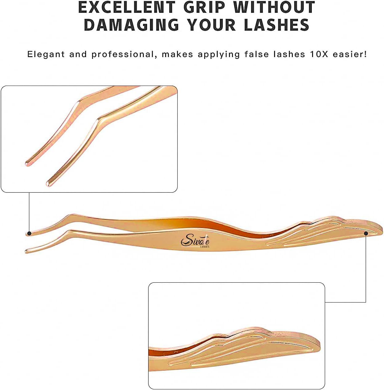 SIVOTE Lash Tweezers & Applicator Tool Set, 2-Pack Precision Tweezers (Straight & Curved Tip, Pink) with Gold Eyelash Applicator Tool for Extensions & False Lash Application