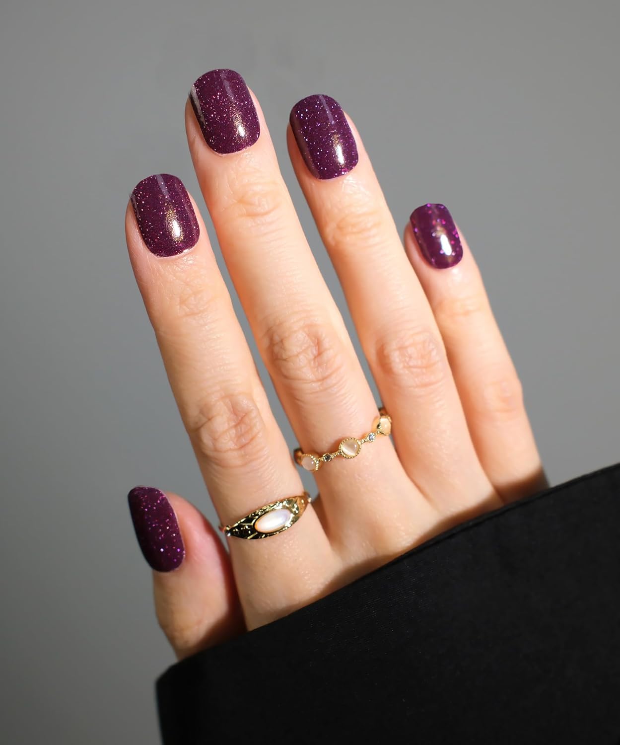 Glitter Nail Polish Strips, 32 Pcs Salon Quality Gel Nail Stickers, Long Lasting Wraps Easy to Use & Remove (Glitter Dark Magenta)