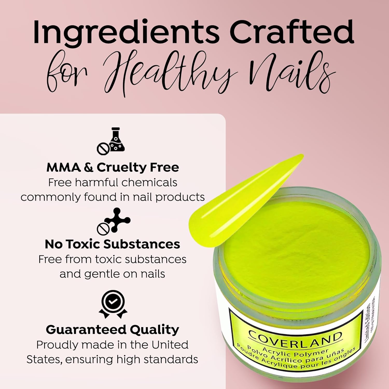 - CAMOUFLAGE IMPERFECTIONS: Coverland Polymers cover the nail bed with highly saturated skin tones and colors, helping to improve aesthetic appearance and hide imperfections. This specially formulated solution ensures a smooth, even application, allowing you to create flawless nail art with ease