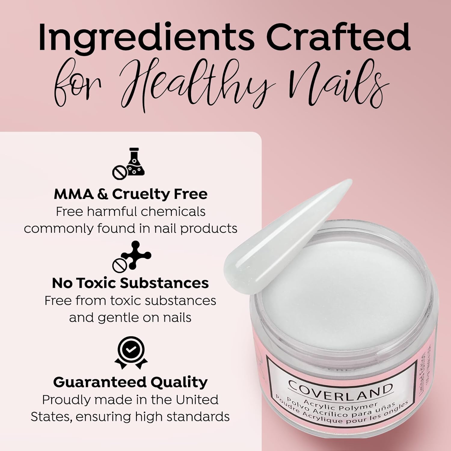 - CAMOUFLAGE IMPERFECTIONS: Coverland Polymers cover the nail bed with highly saturated skin tones and colors, helping to improve aesthetic appearance and hide imperfections. This specially formulated solution ensures a smooth, even application, allowing you to create flawless nail art with ease